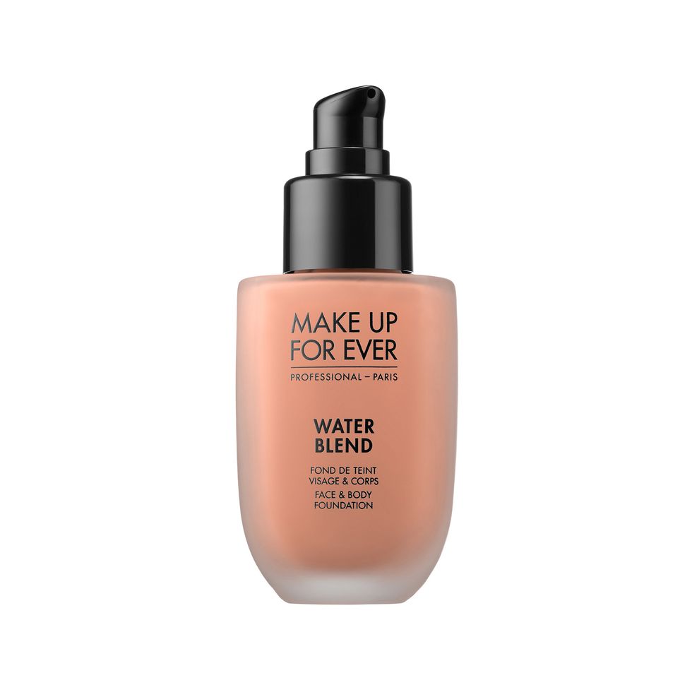 “To give a bronze effect, apply MAKE UP FOR EVER Water Blend formula in a shade slightly darker than your skin tone. This will give you a light, dewy coverage. Next, apply Ultra HD Concealer under the eyes and to the high planes of the face. Use the Pro Sculpting Palette to apply a light contour and sculpt the cheekbones.