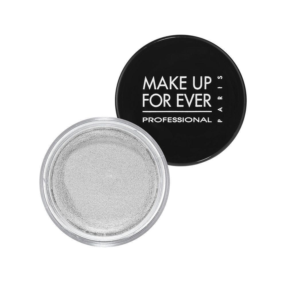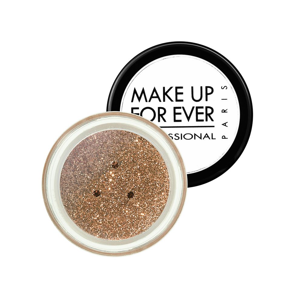 “Next, start with a fine glitter and apply it directly to the center of the eyelid. Use a product like MAKE UP FOR EVER’s Aqua Seal or Mist and Fix to adhere the glitter. Next, apply a larger glitter like MAKE UP FOR EVER’s Glitter #11 to the center [of] the eye and underneath the lash line.