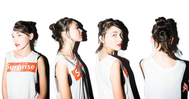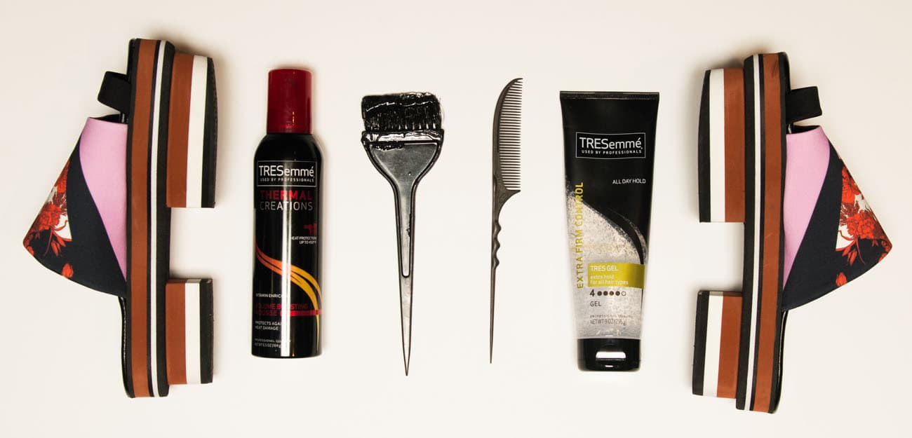 Paint TRESemmé Mega Firm Gel through front strands using a hair color brush, then use fingers to apply gel to the ends of each bun to complete the wet look.