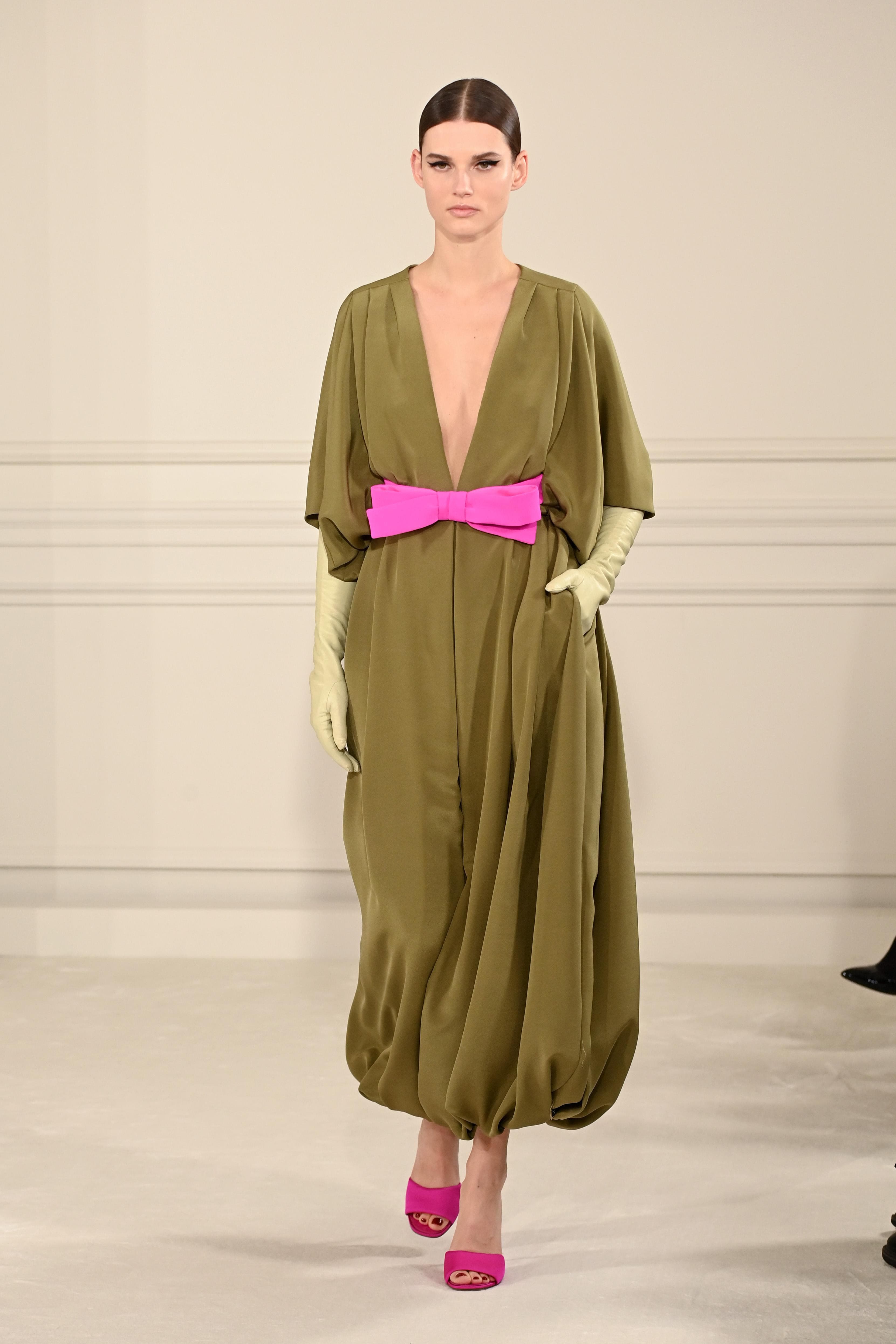 Photo: Pascal Le Segretain/GettyIt was honestly difficult to pick just one look from Pierpaolo Piccioli’s Spring ‘22 Haute Couture collection for Valentino. The above not only has an intriguing volume dynamic at play, but the combination of colors is to die for. A hot pink bow, a plunging neckline, and an olive green bubble skirt? Harmony. Honorable mentions go out to the low-slung suiting looks, the sheer thigh-highs, and this creamy masterpiece.