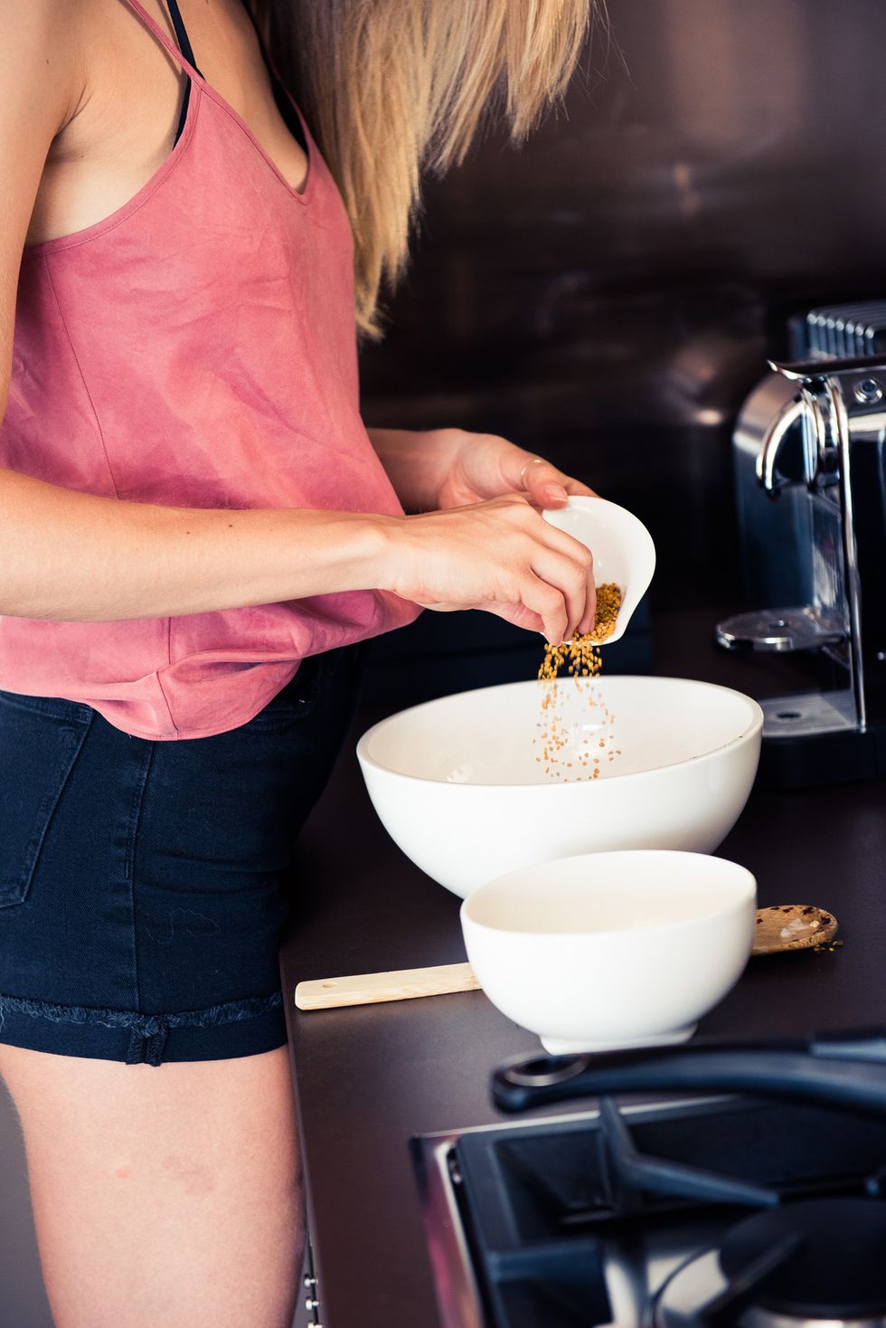 We’re the type of people who want to sleep in until the last possible minute on any given morning, so quick and healthy breakfasts have become somewhat of our forte. That doesn’t mean we’re not always on the hunt for new options. Over the years we’ve met quite a few people who have admitted to us that they have perfected the art of whipping up a quick and healthy breakfast before running out the door. We figured, why not turn to one of them for a recipe or two? Enter Penny Lane (remember her from her chic vacation workout?), a model who is constantly on the go between castings and shoots in international cities. She makes a muesli recipe that is to-die-for, and we had to get in the site for you. It’ll make your Monday morning a breeze.