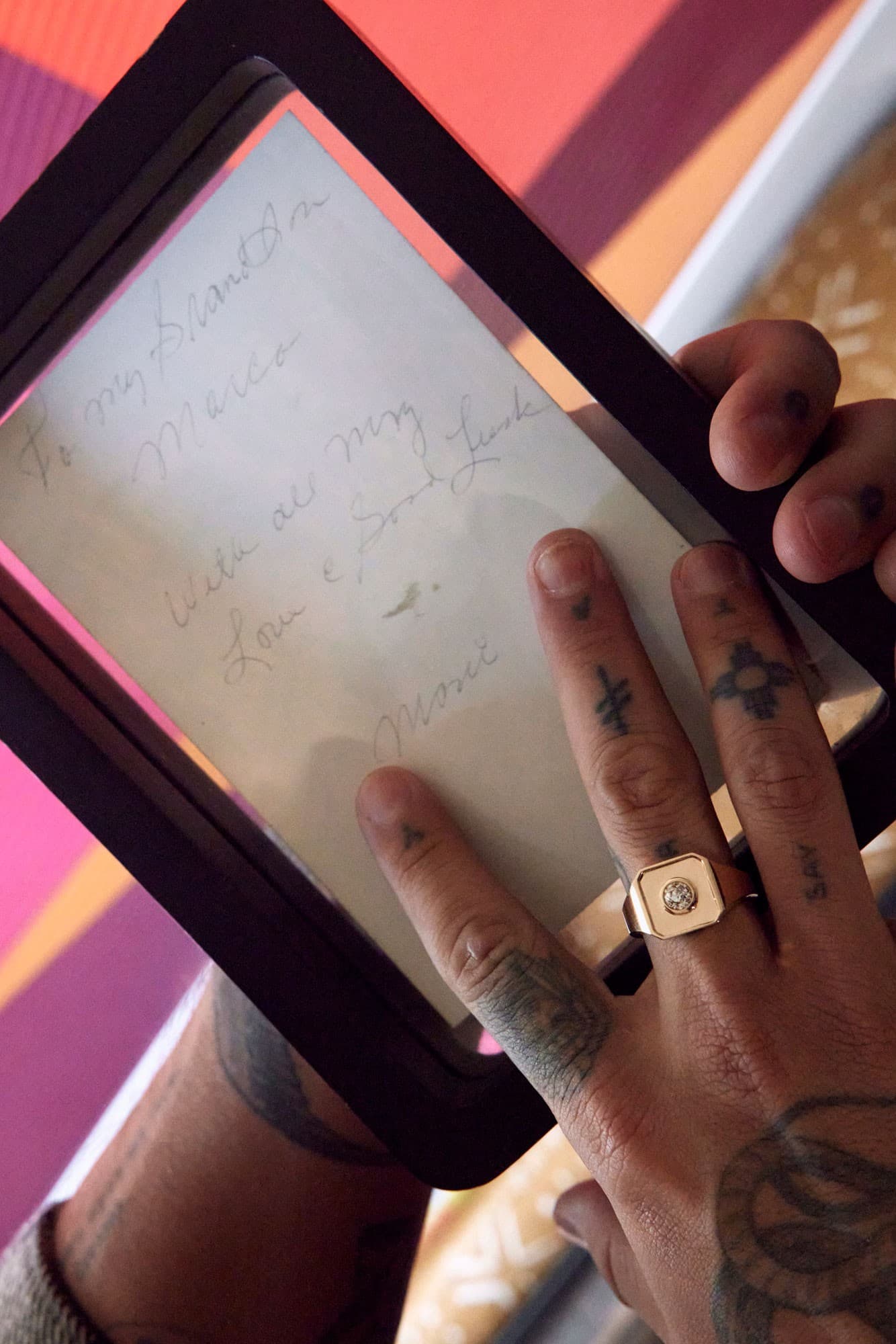 With some trepidation about trusting a stranger with such a loaded personal piece of jewelry, he was relieved to find that Sassone was “so beautifully, elegantly, quietly, compassionately, conversational” that he felt immediately comfortable sharing this story. When Sassone sent him the renderings of the design they created in homage to Ramón’s ring, he cried—“not just out of sadness but happiness as well. It was this duality of emotion.” Now that Duron has the finished ring, he hasn’t taken it off. “Every time I look at it, I remember great love, your soul being one half of a whole, and about hard work. Taking ownership of your mistakes. Loving fearlessly. These lessons from my grandfather inspire everything I do.”