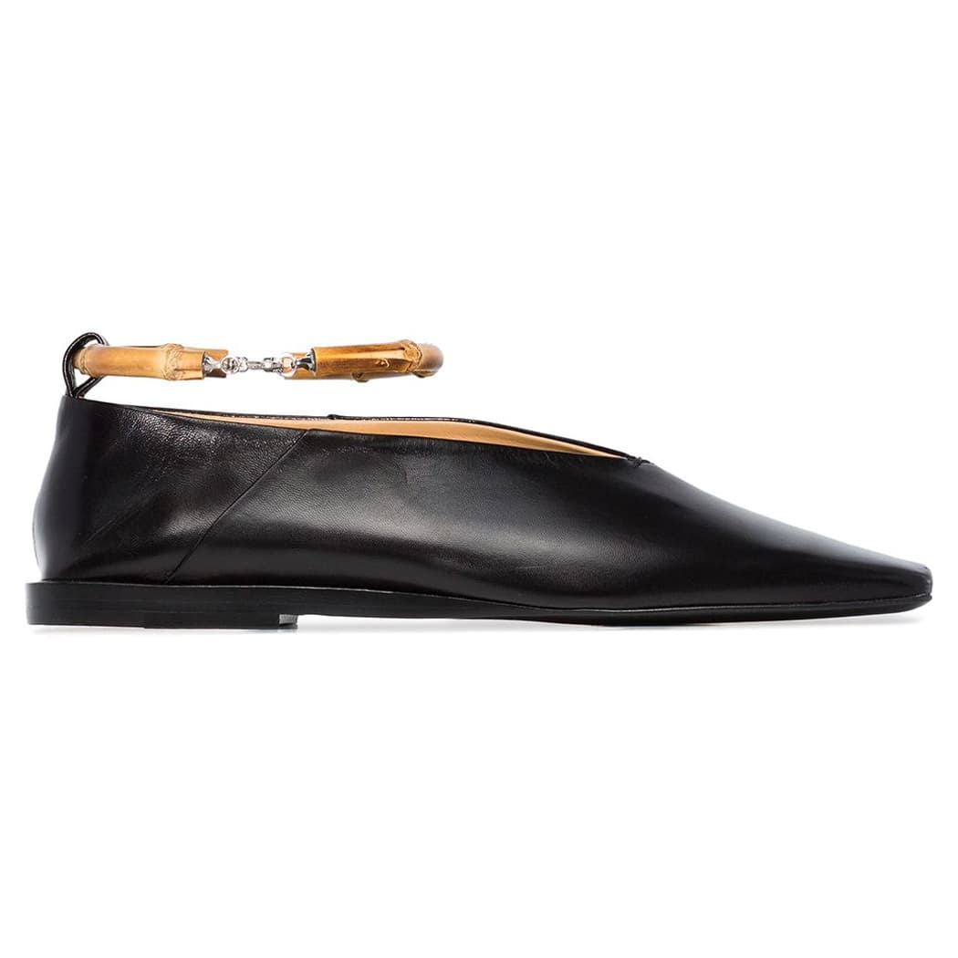 Bamboo-trimmed Leather Ballerina Shoes