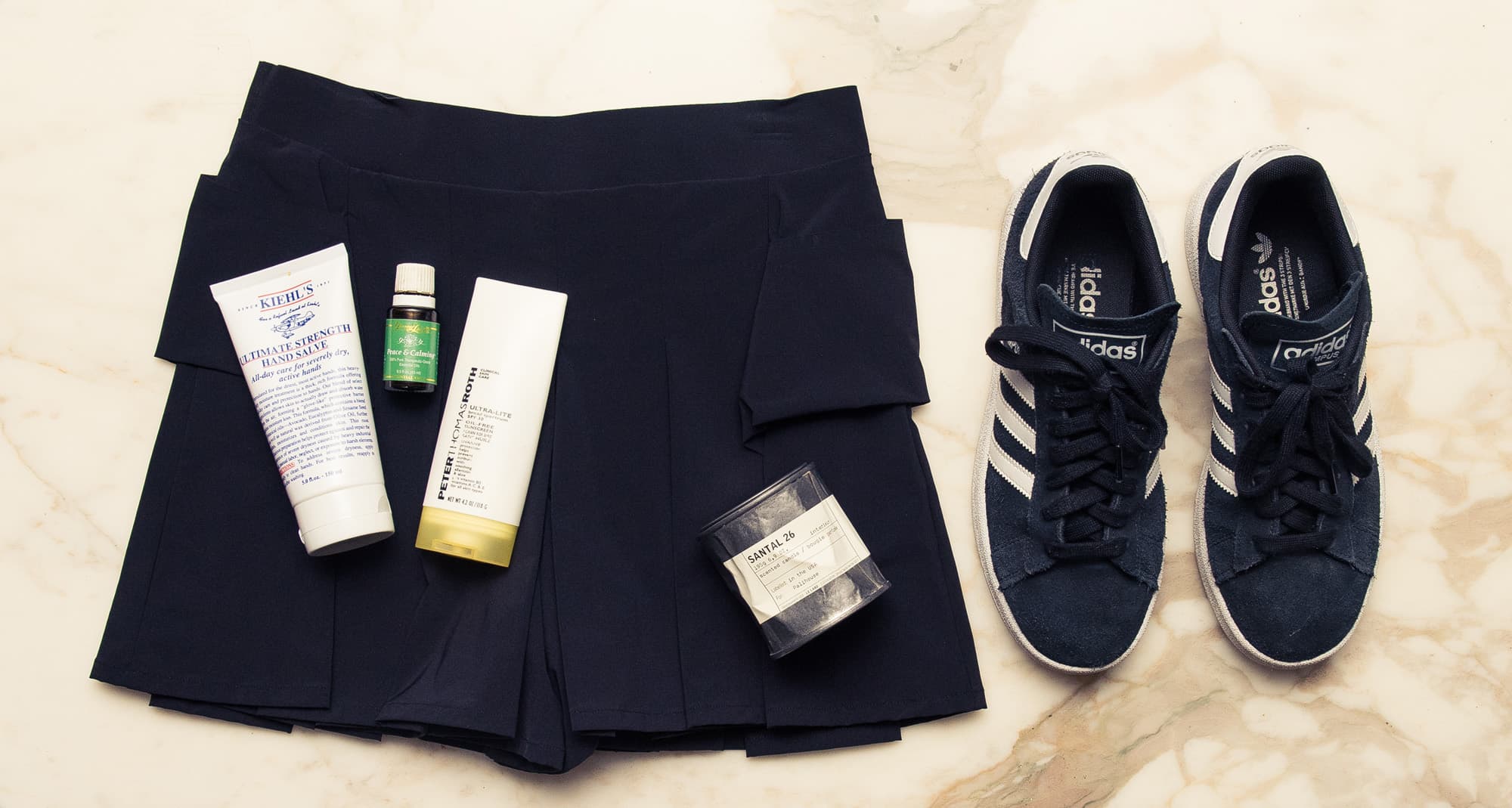 “It’s super important to always keep moisturized. I feel really dry and dehydrated—especially on long flights—so I use a lip balm that one of my girlfriends makes that’s organic and yummy. I always have either a CHANEL or 3lab eye cream—I’m constantly dabbing that on; and then some type of rosewater spray to keep my skin hydrated.”