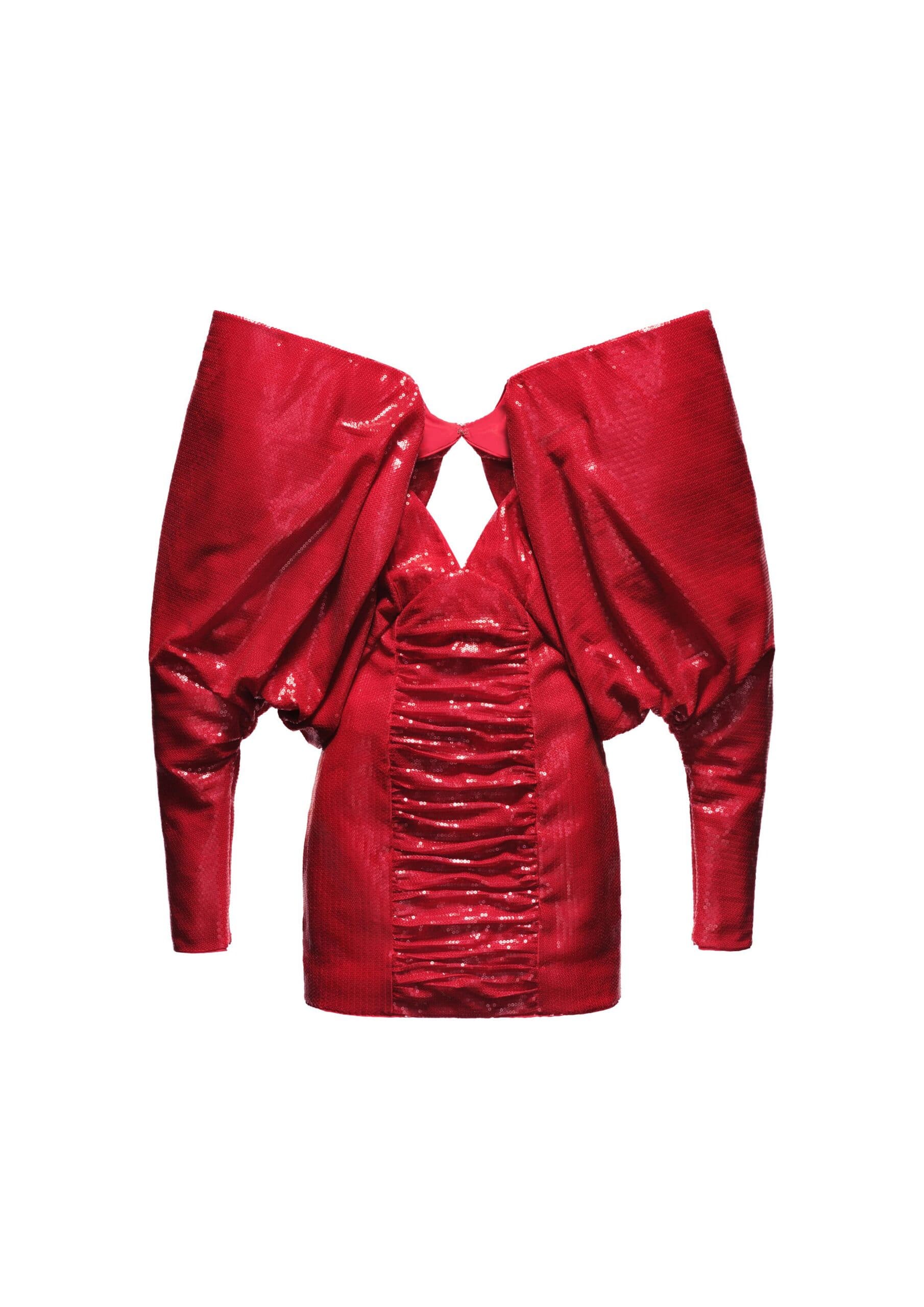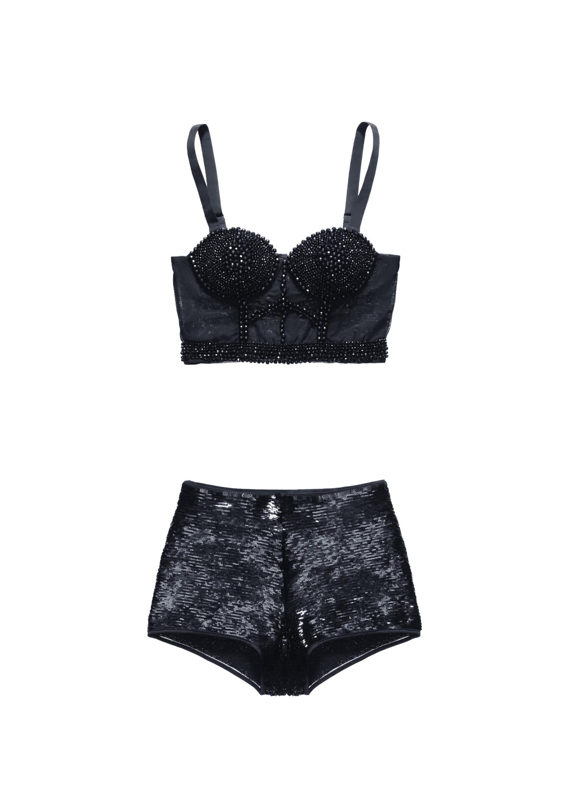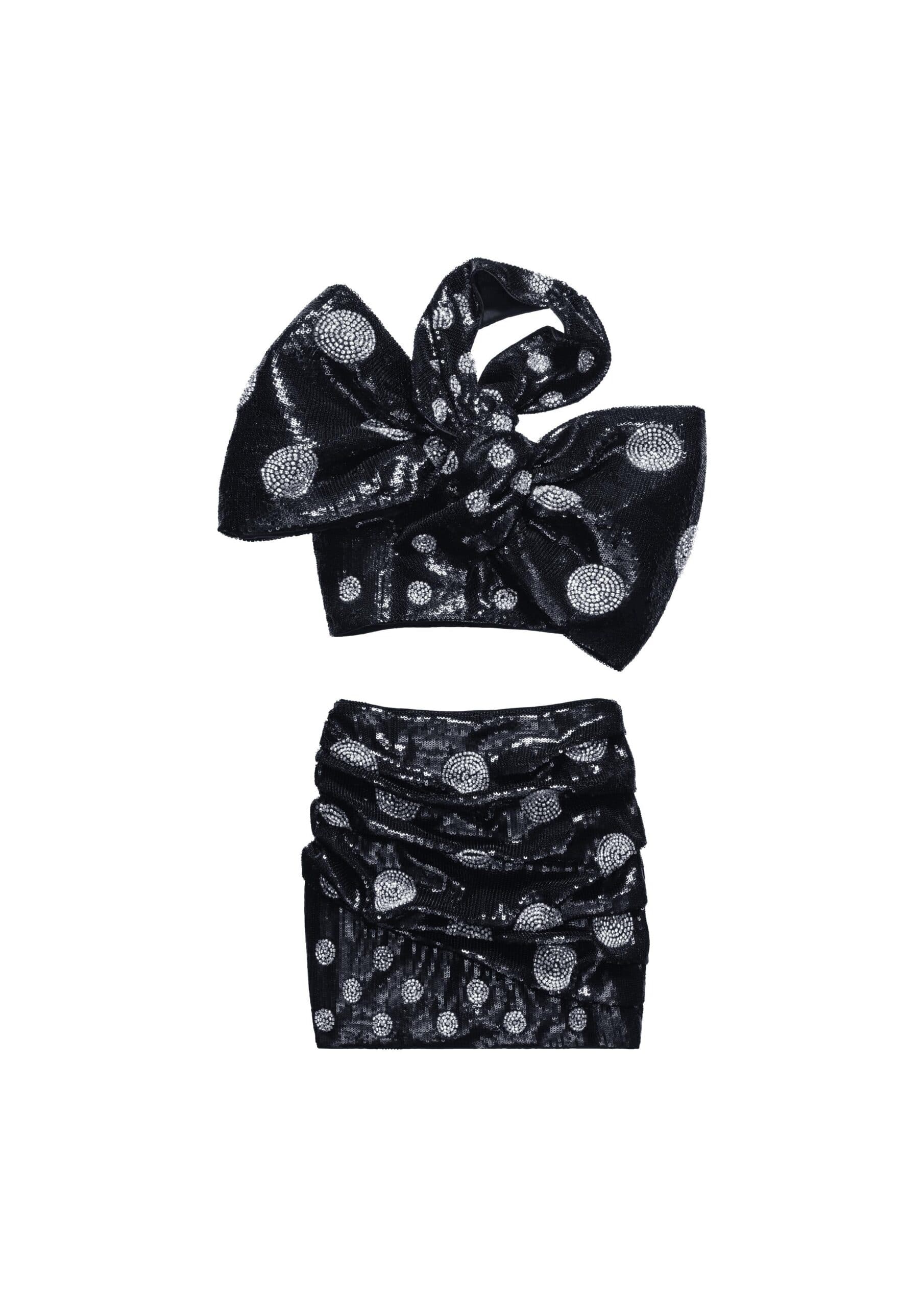 Sequined Top with Bow & Mini Skirt with Sequins and Rhinestones