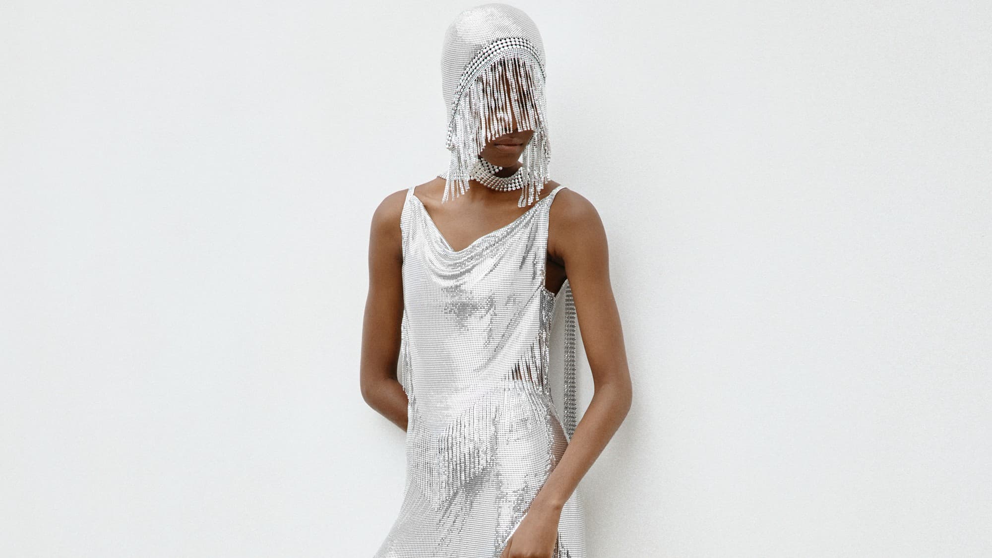 Years ago, I let a heavily discounted iconic chainmail skirt from then-named Paco Rabanne go—deeming it too frivolous for my current lifestyle—and it still haunts me. My wallet-conscious prayers have finally been answered in the form of H&M’s latest designer collab with none other than Rabanne, helmed by creative director Julien Dossena since 2013. Dossena drew on the ‘60s and ‘70s ethos of the house’s eponymous founder to create a collection apt for the discotheque. The capsule does not forgo the house’s legacy features; high octane, futuristic shimmer proliferates via metallic mesh and mirrored paillettes.