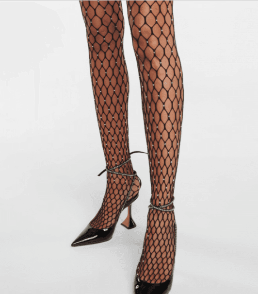 x Amina Muaddi Crystal-embellished Fishnet Tights