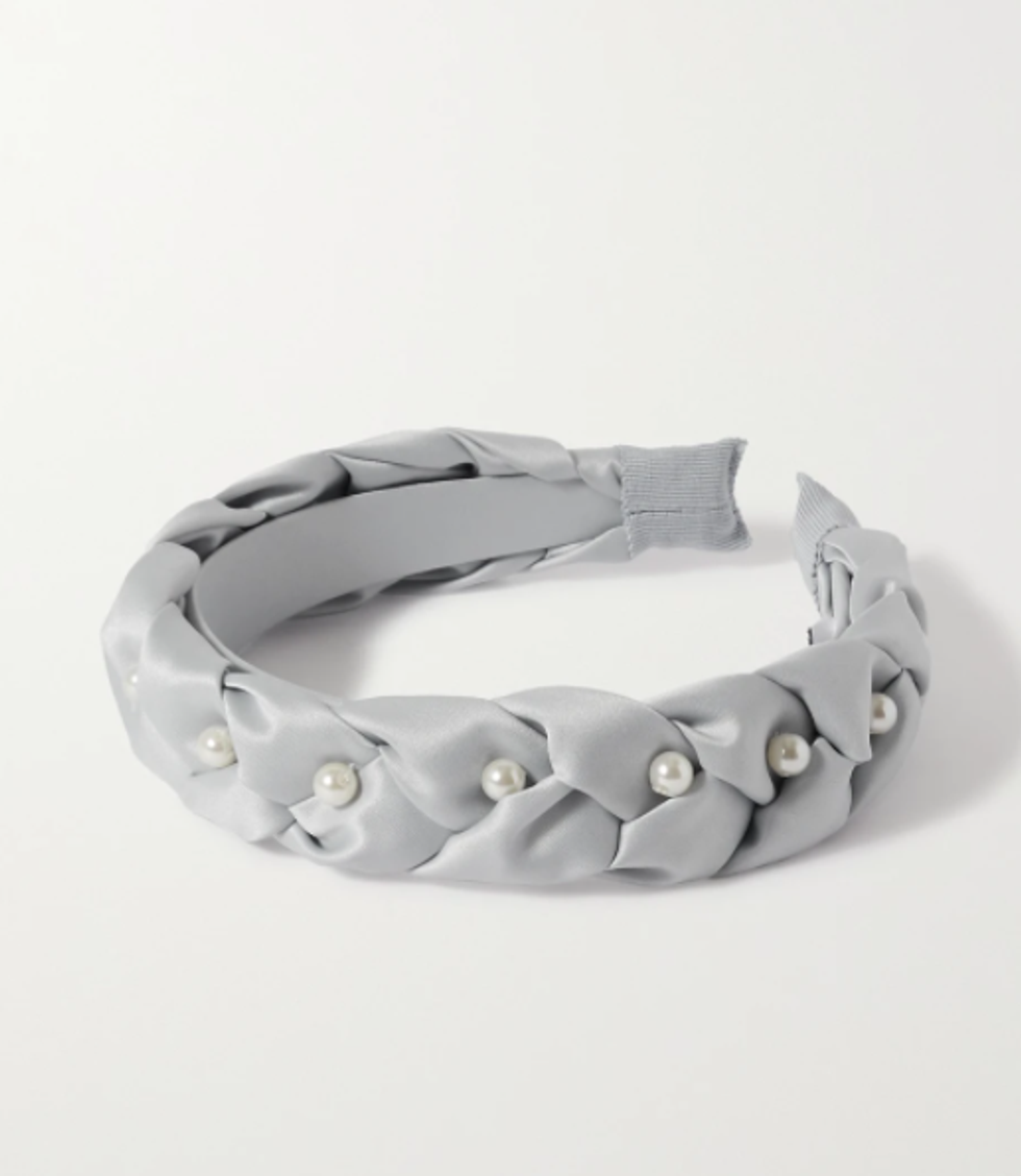 Blame it on our ongoing appreciation for Blair Waldorf’s wardrobe, but a zhuzhed-up hair piece always seems to be the best topper to any look. In this case, these pearl- and gemstone-covered ones are kind of like the star atop a Christmas tree: They complete an ensemble to a dazzling effect.