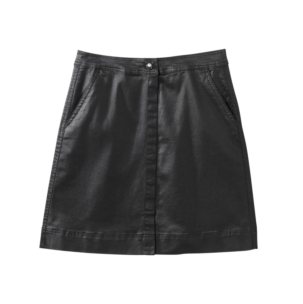 1. Coated Denim Skirt: Holiday dressing is tricky. On one hand, it's the collective last gasp of, uh, society; everyone is endlessly exhausted and thus wants to basically be swaddled in clothing as comfortable as possible, facing society be damned. Simultaneously, it happens to be the time of year you're likely getting in facetime with eeeeeveryone in your life, especially those most likely to grill you with questions about the most inappropriately intimate details of your life. To boil down the predicament into a sentence? You need to feel cozy, but impressive enough. Enter a skirt that's both easy and forgiving to accomplish that.