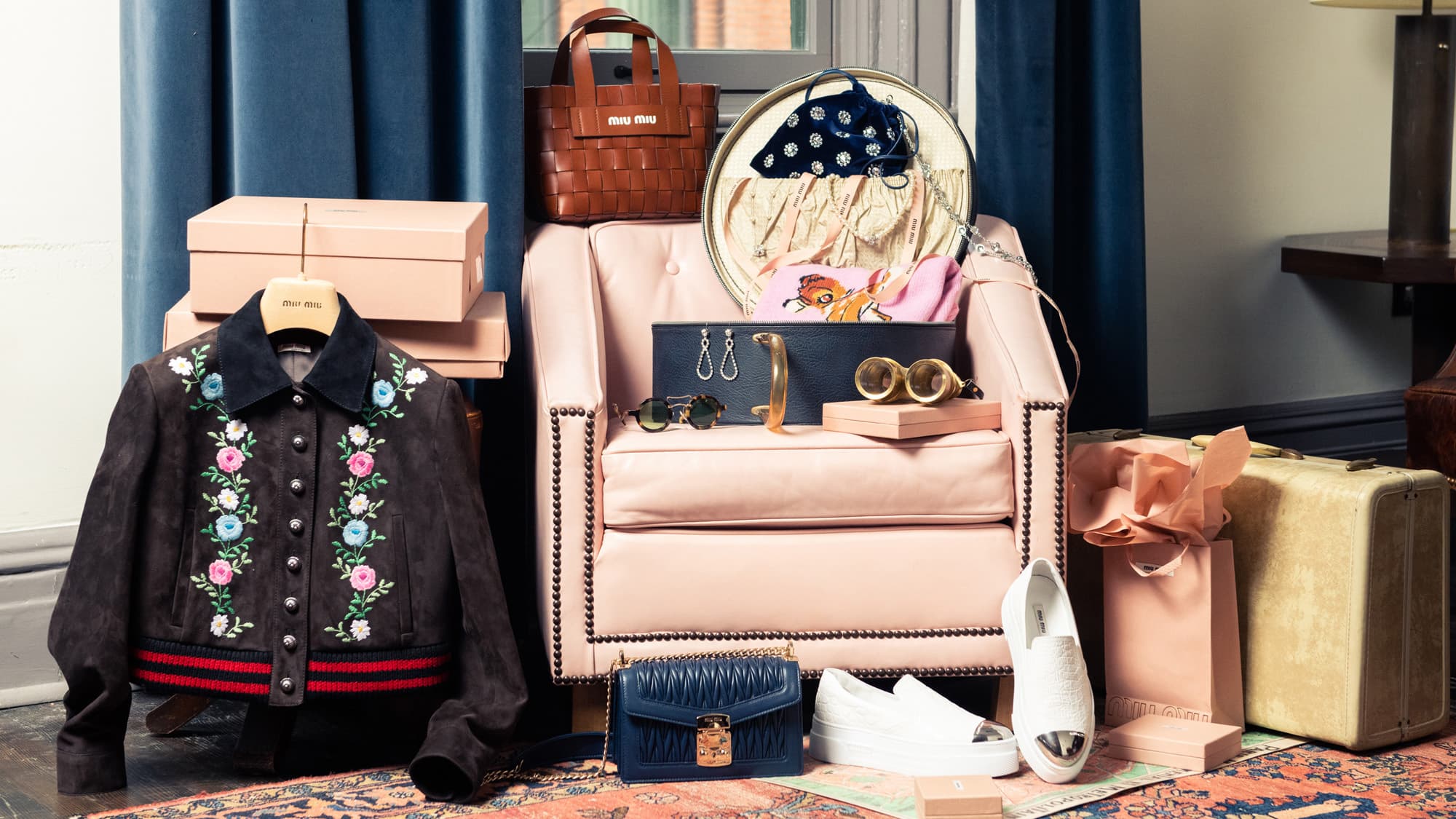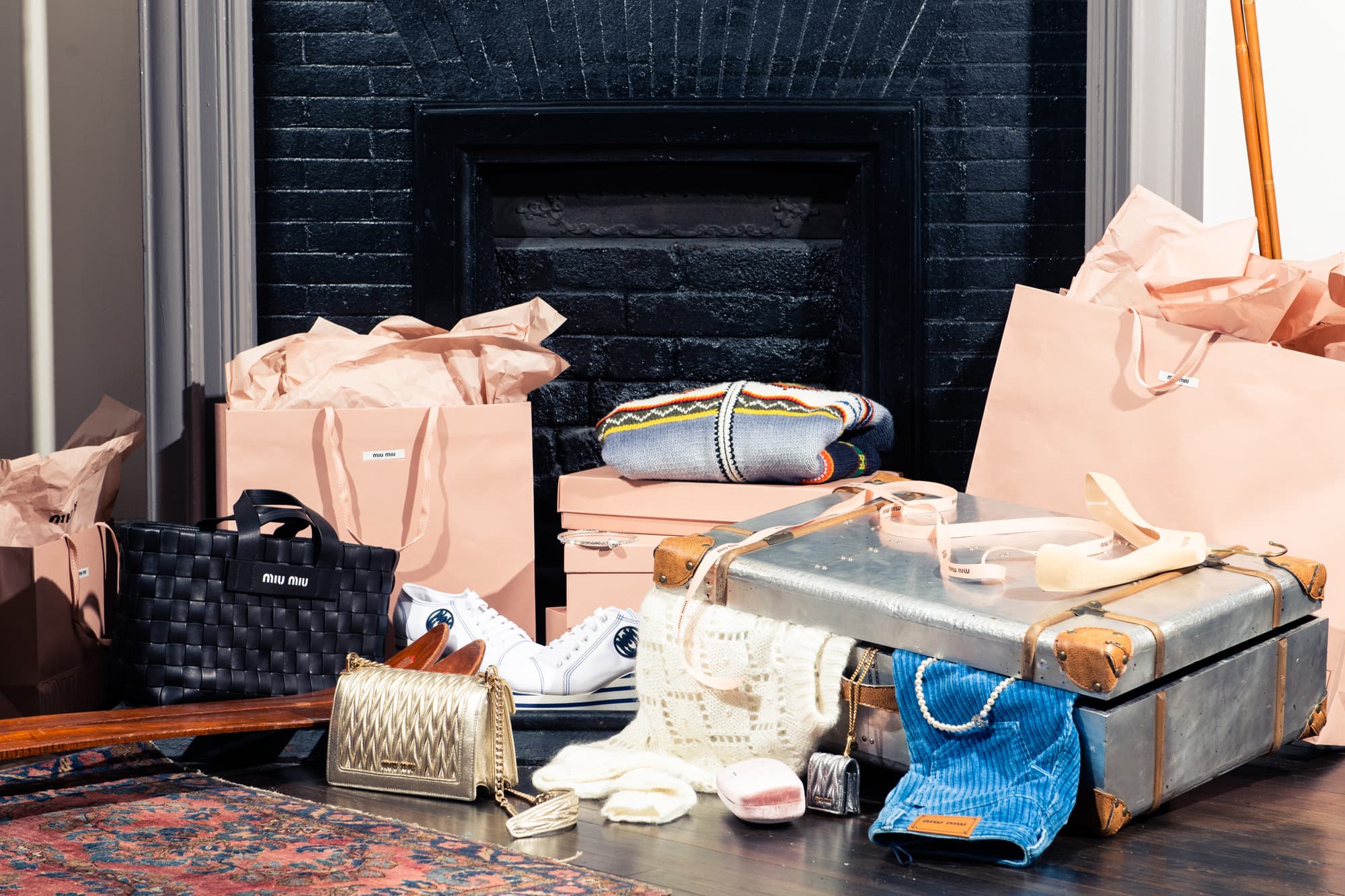 The star of this stash, of course, is the very ’00s mini-dress with crystal-studded straps begging to be your NYE look. We’ll take that, and raise you a pair of fun snake-print wedges that will carry you from extra poolside lounging through to dinner and drinks, plus a sunny yellow cardholder to stash your hotel key (easier to lose than ya think after a few piña coladas). For the same reason, we’ve fallen for Miu Miu’s silver AirPod case (yep). Think of it as necessary to protect your investment. We also love the brand’s assortment of woven bags for a holiday in the sun—a fun frayed straw number for your nights out, and a trusty woven leather tote for everything else.
