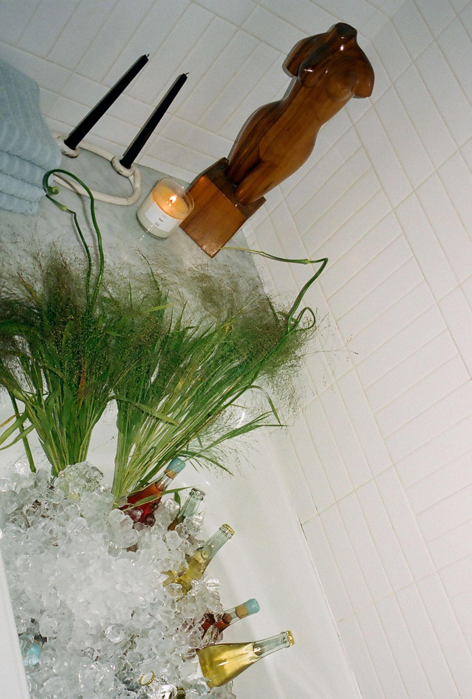 When I'm hosting at my home, I always have The Break's 7PM candle burning in my entryway and bedroom, and 9AM in my bathroom. Lighting and scent are incredibly important in setting the tone for the evening, and candlelight is the best light. I like fresh flowers, cheese, jams, bread, and beautiful, high-quality olive oil like Brightland on the table. A mix of vintage and Ichendorf Milano glasses and plenty of wine in the fridge (it's always better to have too much than too little). We Are Not Really Strangers is close by in case the party wants to get honest."