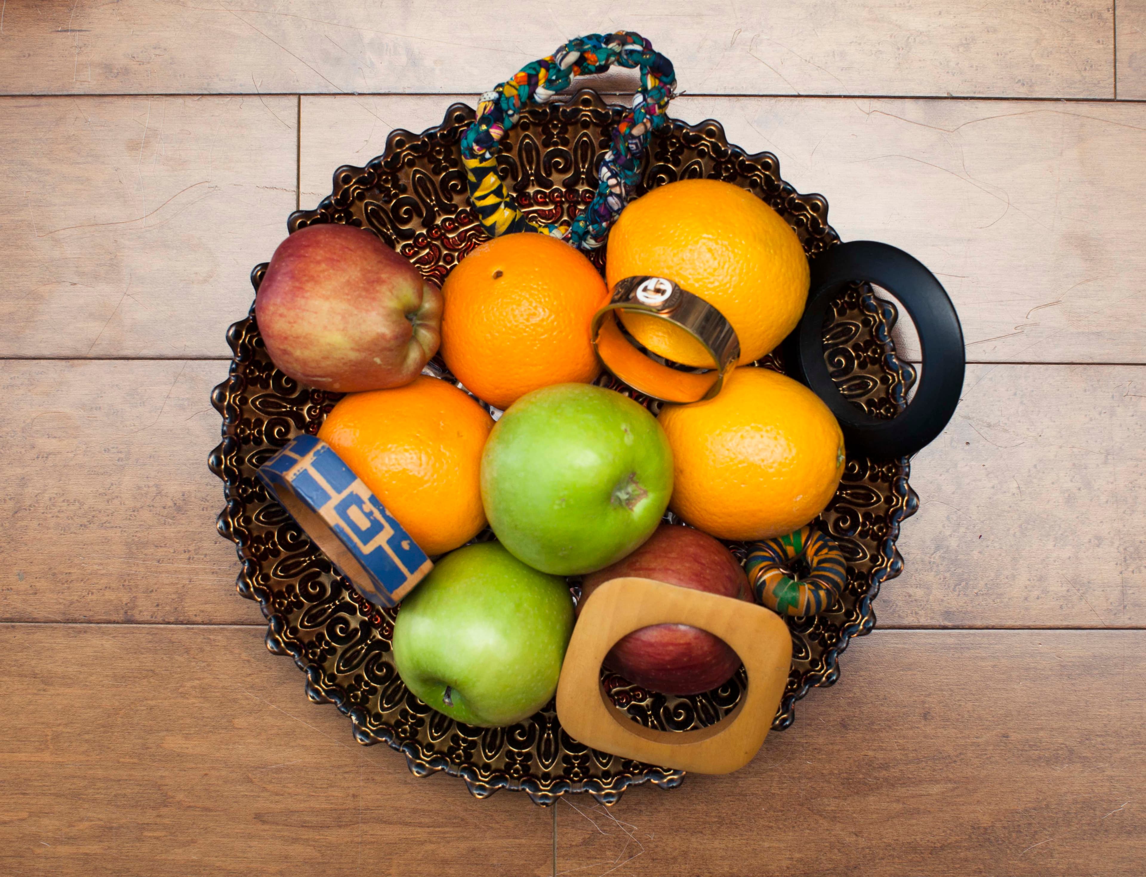 “In my daily bag, I like to have snacks—an apple or tangerine—and I make my lunch. Happy Plugs earbuds, Voss water, socks (that’s really weird).