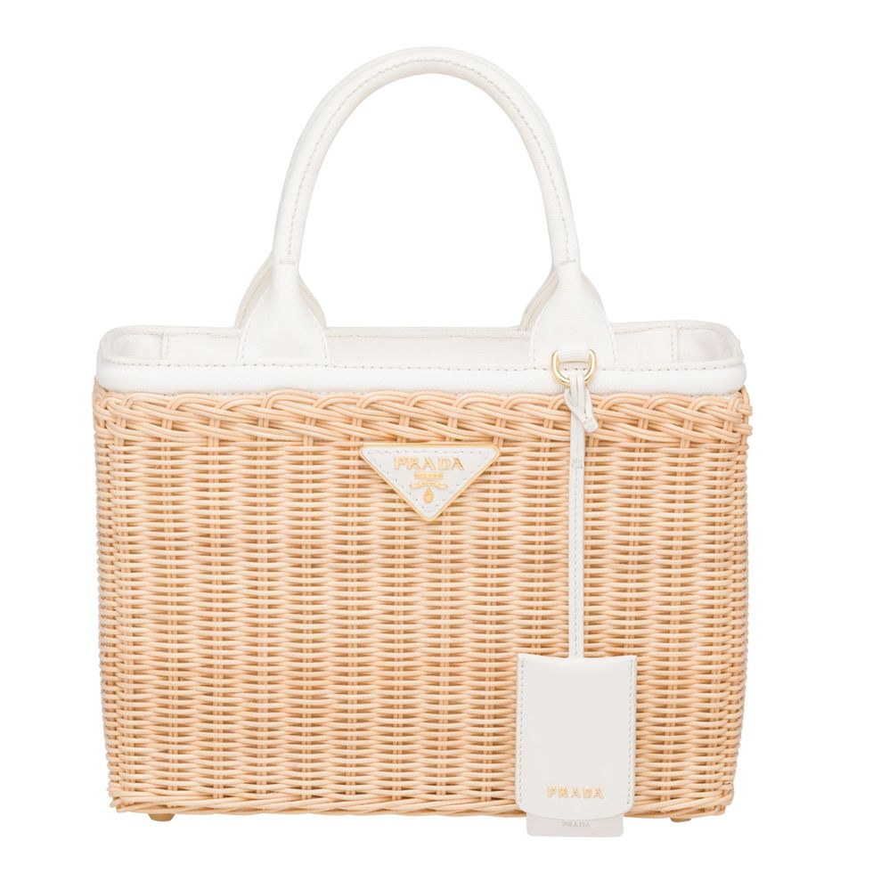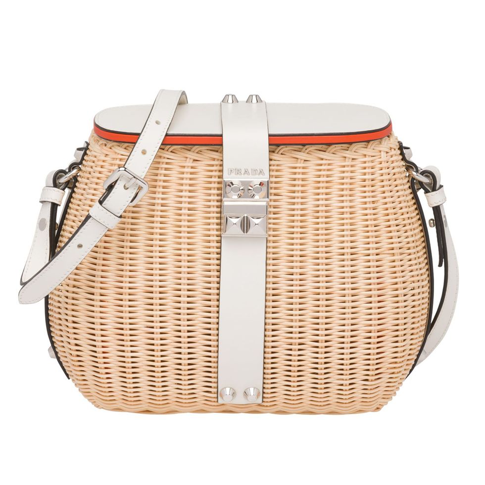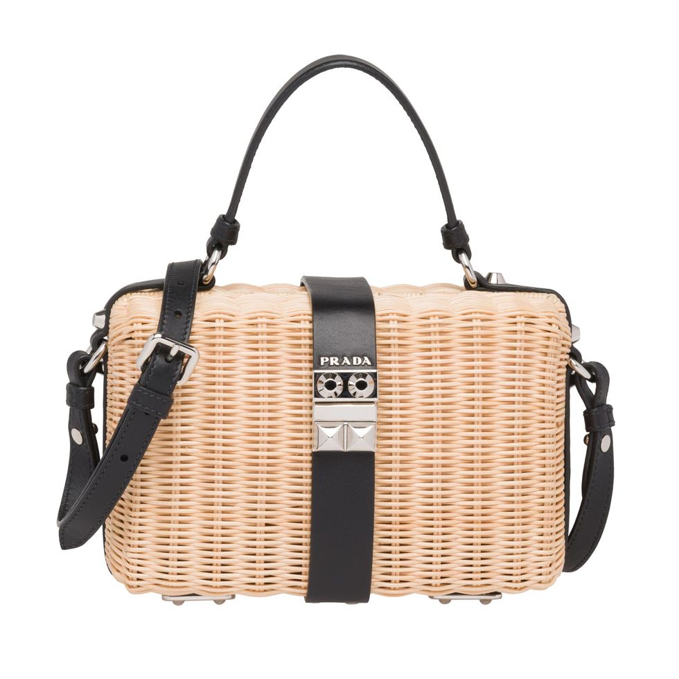 “I love all of the straw Prada pieces. To me, straw is the quintessential spring accessory and symbolizes that feeling. You wouldn’t really wear a straw bag in the winter. It just wouldn’t feel right! They look really great with the flat sandals that I’m wearing, or with a platform in a natural material, like a raffia. It’s keeping within the same family, but still feels light and spring-summery.”