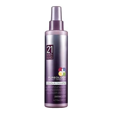 “[I use] Spray Pureology Colour Fanatic on towel dried lengths and ends, this will act as a leave in conditioner and give hair extra reinforcement for the brushing process.”