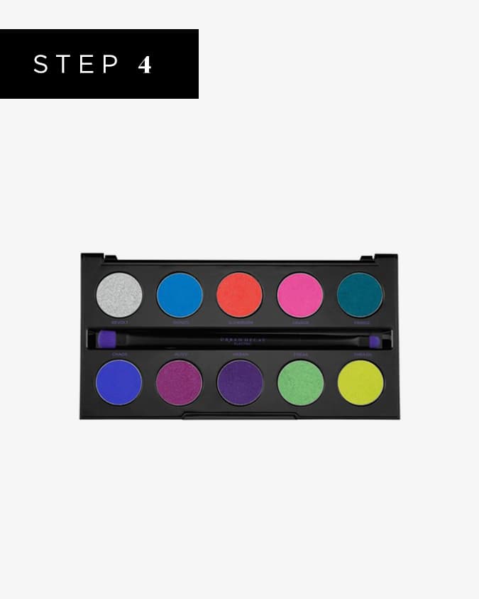 Pack on a bright red eyeshadow over the top. The shade Slow Burn from the Urban Decay Electric palette is ideal. Apply over the entire lip using the same brush. This helps mattify and intensify the neon shade.