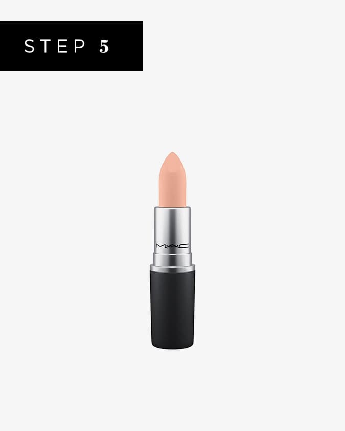 Lastly, use MAC Powder Kiss Lip in shade Best of Me to the edges of the lips. It acts as an eraser for a cool ombre edge. That’s how you get the juicy center that fades out into flesh tone.