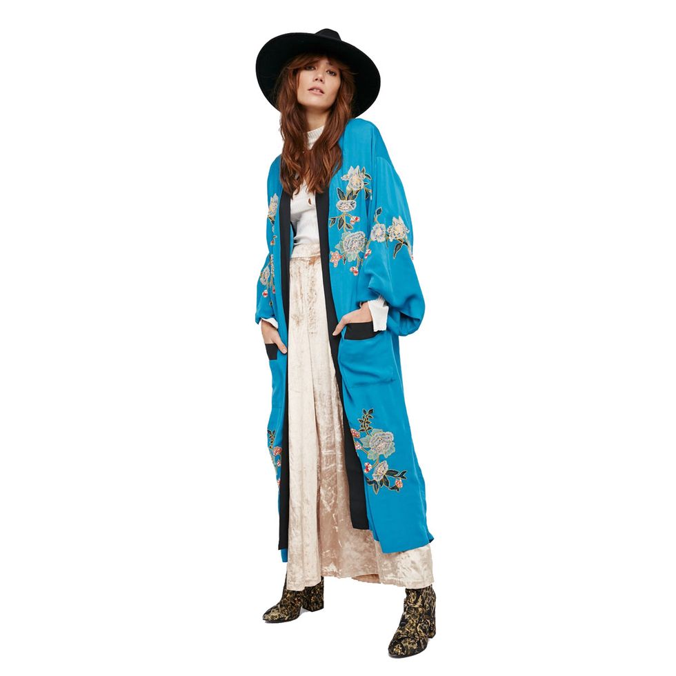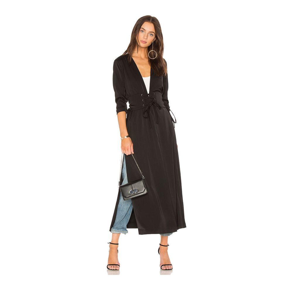 If you’re looking for a less structured, more comfortable outerwear piece that you can just throw over an outfit, the robe coat is where it’s at. It’ll help you achieve that warm and cozy look of a fall jacket without getting too hot. “Robe coats are effortless and easy! I'm really into them over jeans right now with a corset belt, or loose over a slip dress,” says McNamara.