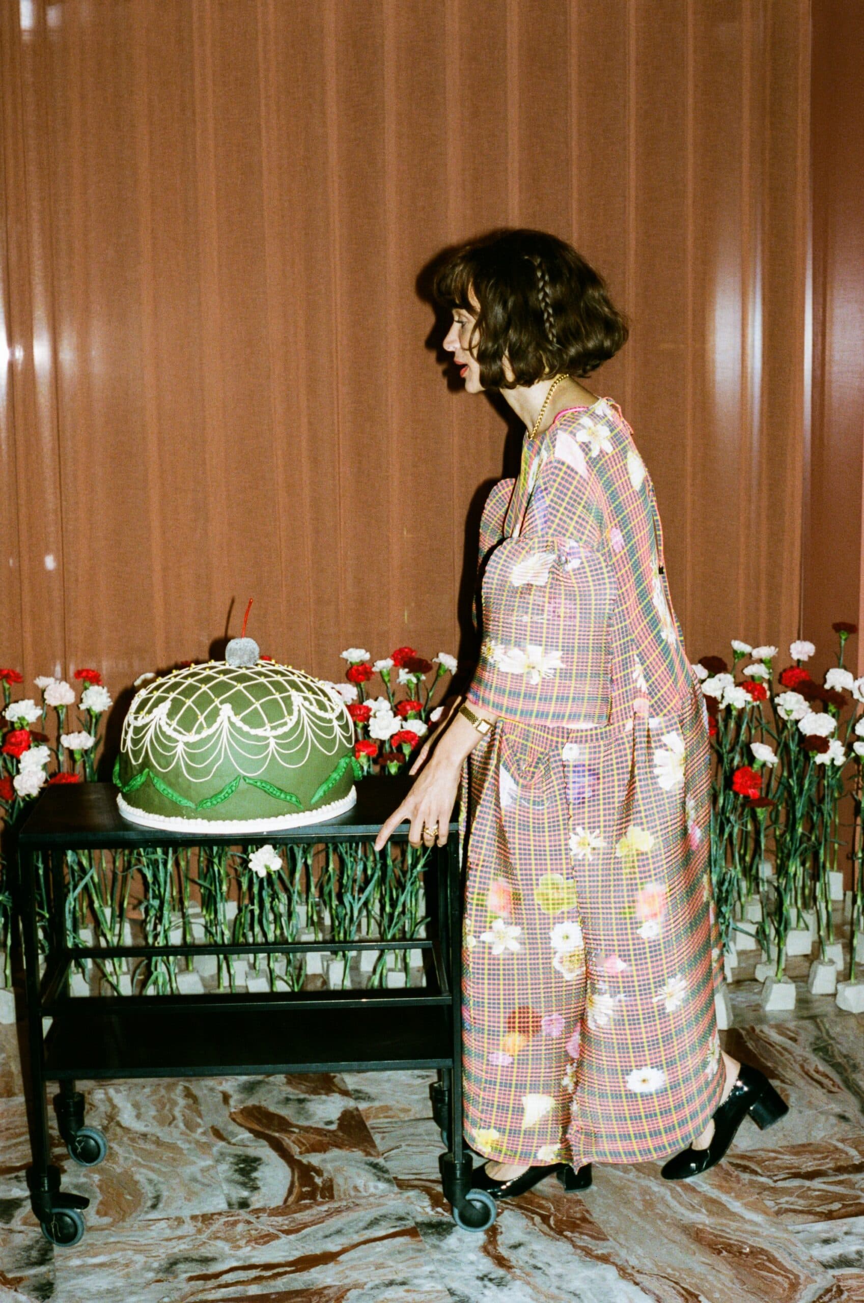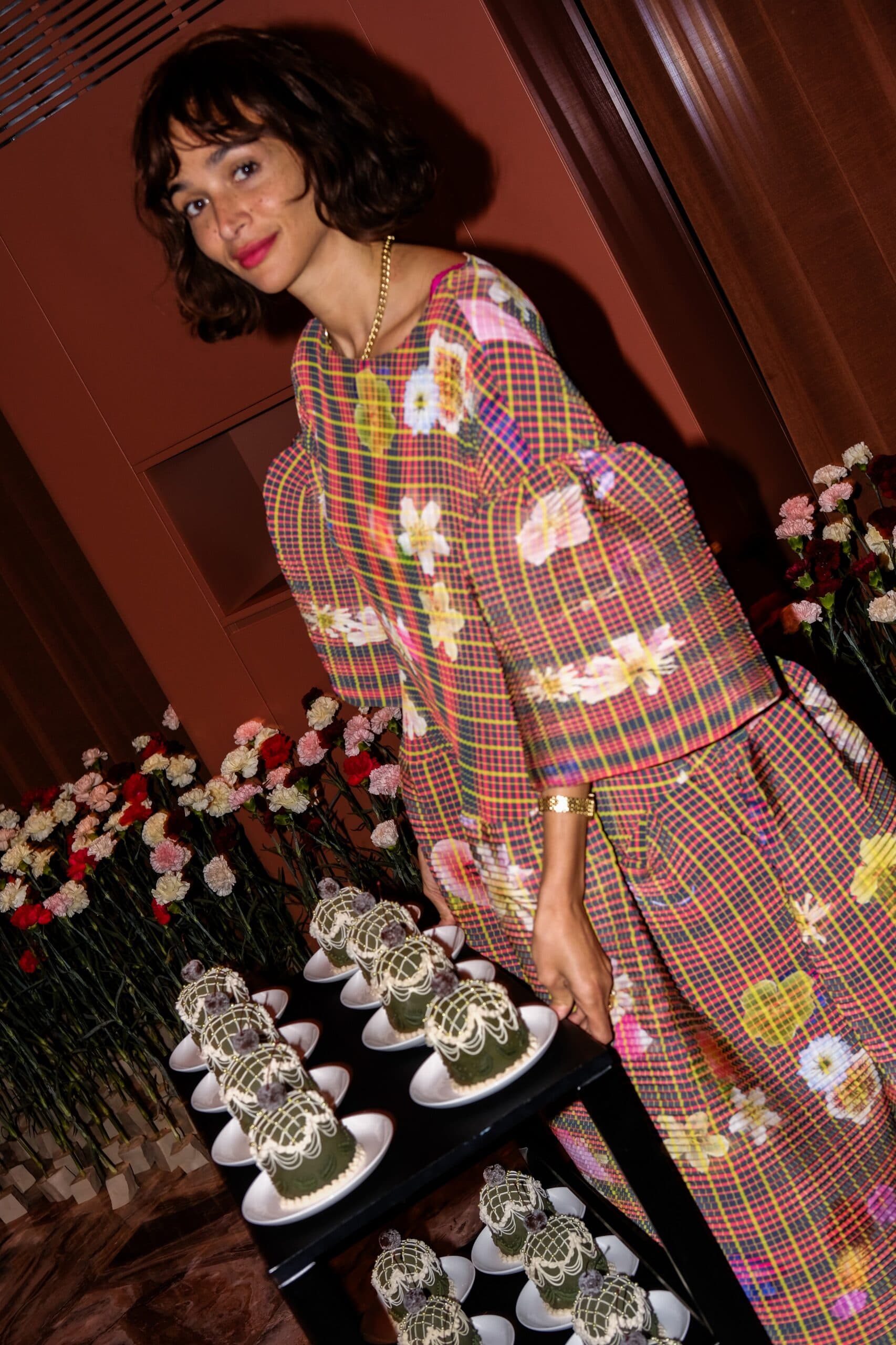 Enter food artist Laila Gohar—plus, the waiter-wheeled carts stacked with rows of sage-green mini panettone—and suddenly everything clicked for those who hadn’t read the invite. The evening marked the debut of her limited-edition riff on Milan’s beloved holiday staple, crafted exclusively for Casa Brera and served all season long at Etereo. Known for her food installations that blend the beautiful and the bizarre—think shrimp pyramids, butter sculptures shaped like hands and ears, and a 16-foot cake—and for co-founding the surrealist tableware brand Gohar World, Gohar was doing what she does best: bringing people together around edible spectacle.
