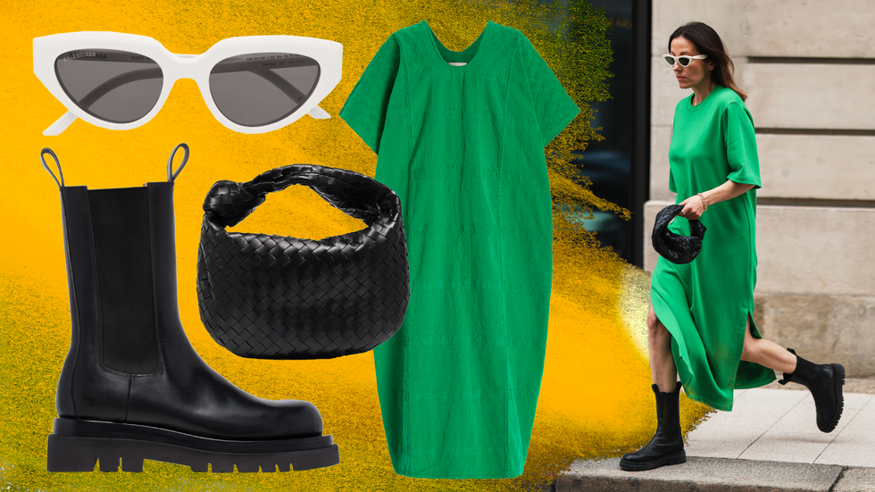 The dark horse candidate for my shoe of the summer are my black cowboy boots. They can be egregiously impractical on 90-degree days, but I am a girl whose nascent sartorial sensibilities were formed during the golden age of Kate Moss Glastonbury paparazzi photos, so boots with anything short is an automatic yes. Since entering my late 20s, however, boots and cut-off shorts aren’t really something I can get away with wearing to the office, so I’ve been on the hunt for warm-weather outfit inspiration where I don’t have to put all of my winter shoes into storage. Here, I’ve gathered some of my favorite summer boot formulas that you can emulate when your sandals are giving you blisters.