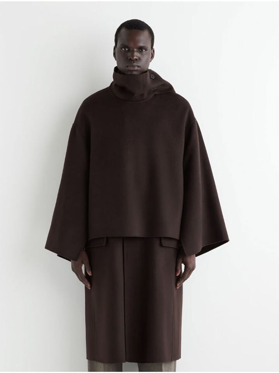 Make your poncho the entire look with a cape-like coat to envelope your entire body. Add a pair of coloured tights to add personality to the look like Pieter Mullier did at Alaïa's Spring/Summer 2026 show. Et Voila!