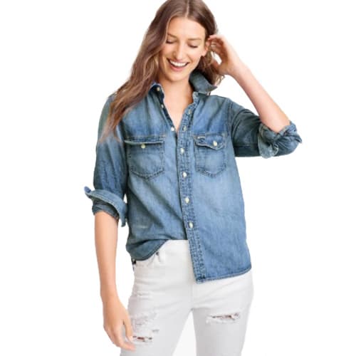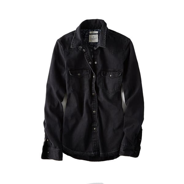 AEO Slim Black Denim Shirt: I haven’t shopped at American Eagle since ninth grade, and I’m seriously questioning why I ever stopped. They have great, affordable denim, including this shirt. Like most denim pieces, you can throw this on without giving it too much thought, and the slim fit is so flattering.