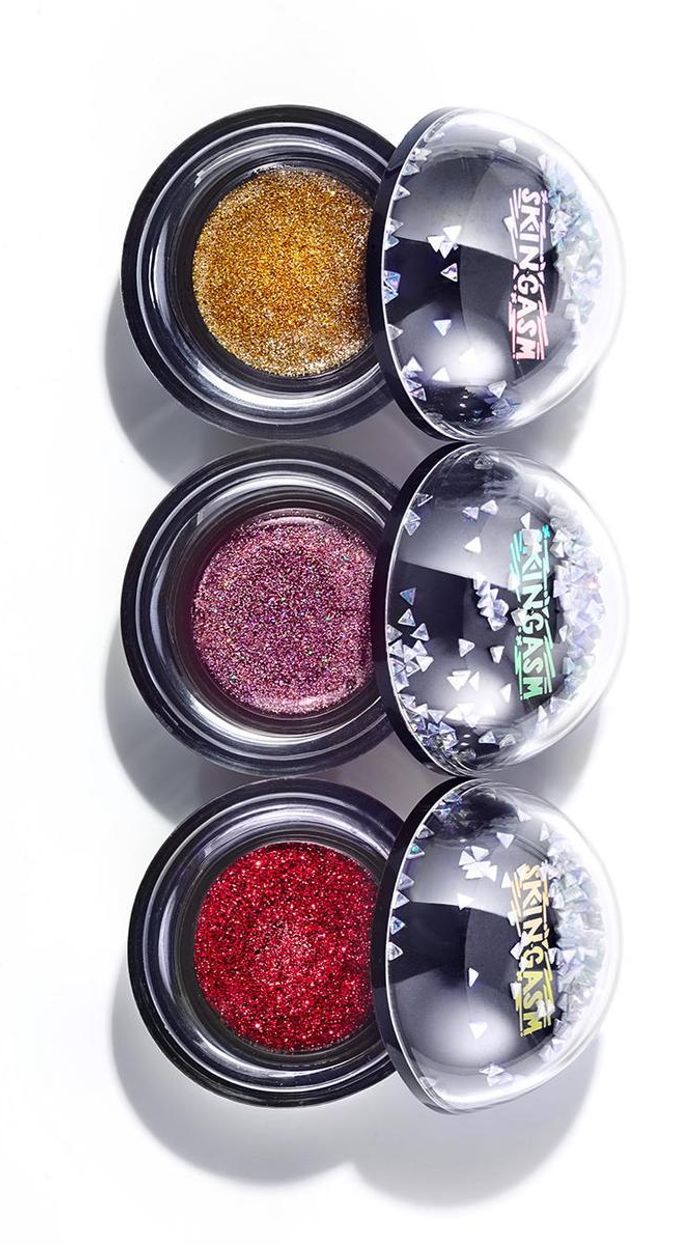Once your skin is hydrated, layer on a sticky base to keep fallout to a minimum. “I love Skingasm Glitter Gloss for how easy it is to apply,” says Dorman. When it comes to loose glitter, though, she loves to use Duo Lash Glue on clients as the base before applying any reflective pigments.