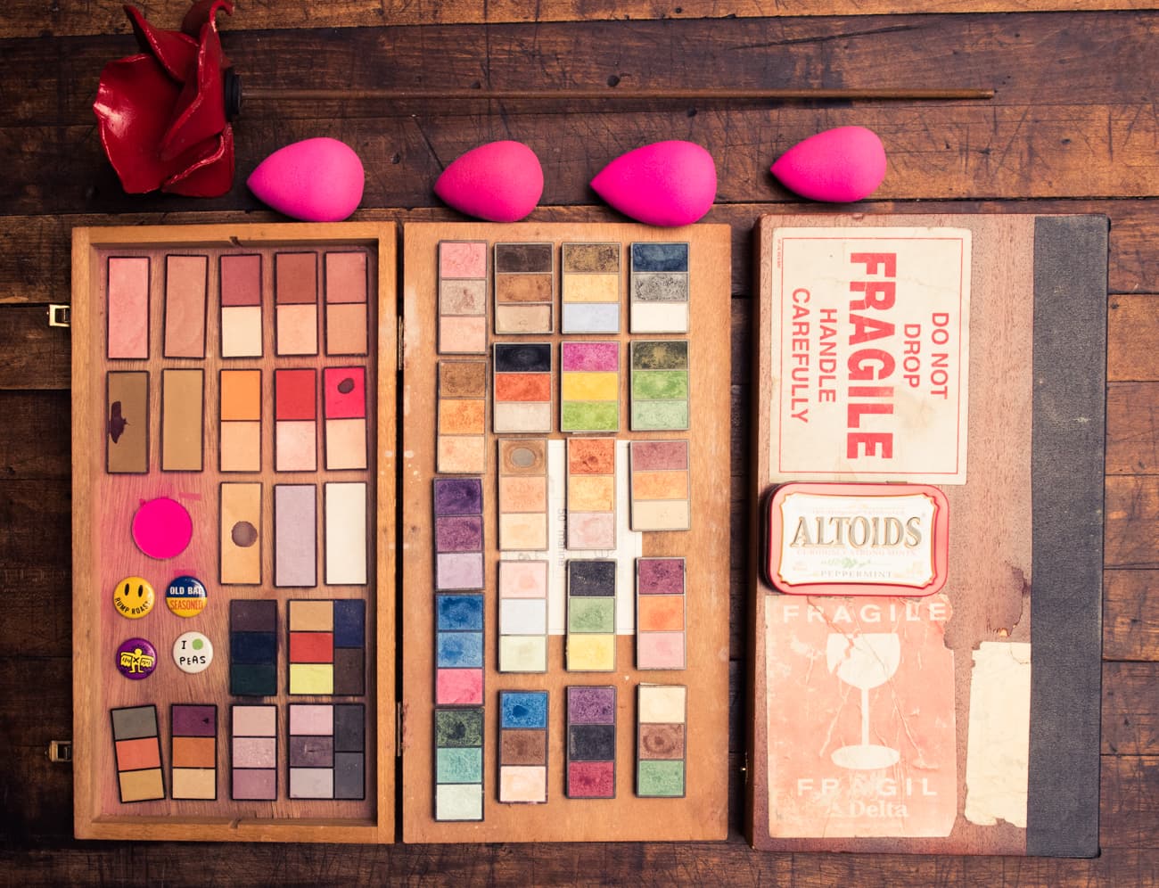 "When I started doing makeup in New York, my kit wasn’t much bigger than a shoe box. I had a few little compact theatrical makeup things had foundations and things you could use for eyes and lips. Black pencil, black mascara, Vaseline, some moisturizer, a powder—super simple things. Then, in the early '90s, Fabien Baron, art director slash designer slash photographer said, ‘you need to bring more stuff with you, because it makes clients nervous.’ It's the same way for stylists; the client comes and wants to see racks on racks on racks. If they see a strap in the ad, it doesn’t matter, but they want to see options like 1,000 shoes, otherwise they get nervous. So makeup wise, for a client, I bring the whole kit, empty it all out, it’s all gorgeous looking, and then they’re like ‘ooooh.’”