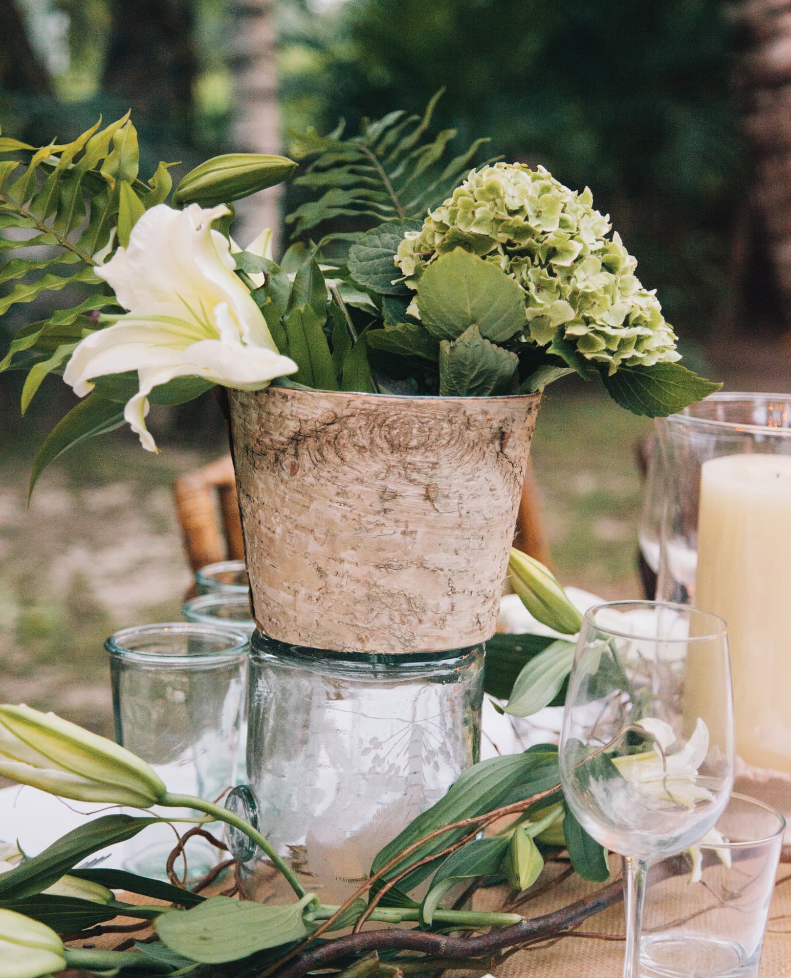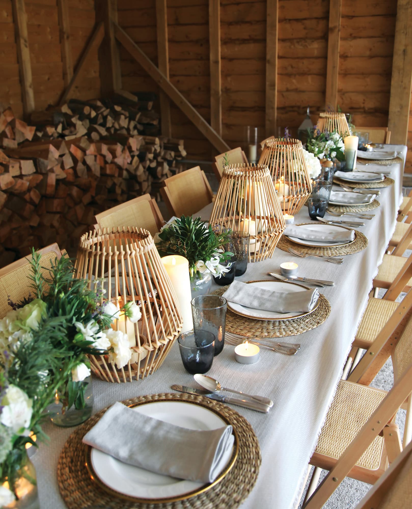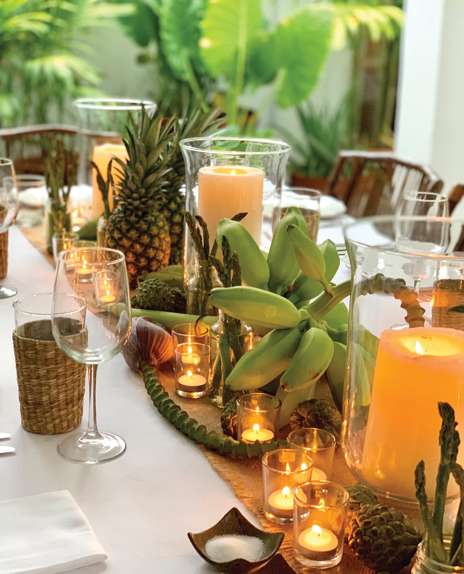 “I think that’s really key. It doesn’t take a big budget to be resourceful. We’re not always going to the florist and picking up fresh, expensive flowers. You can go into the garden and just pluck some leaves off a tree and arrange them in a fun pattern. We do that a lot with palm fronds. We’ll often have a table runner that is made up of them down the center. Here in England, it may be that you’ve got some dried roses that you put down time and time again. You don’t need to always be going out and buying the fresh ones.”