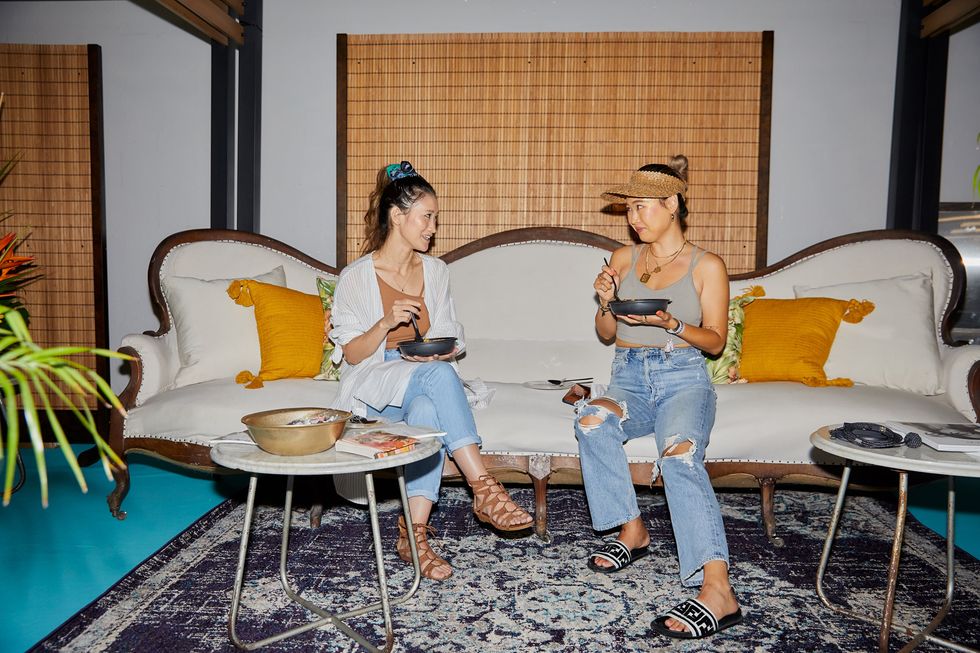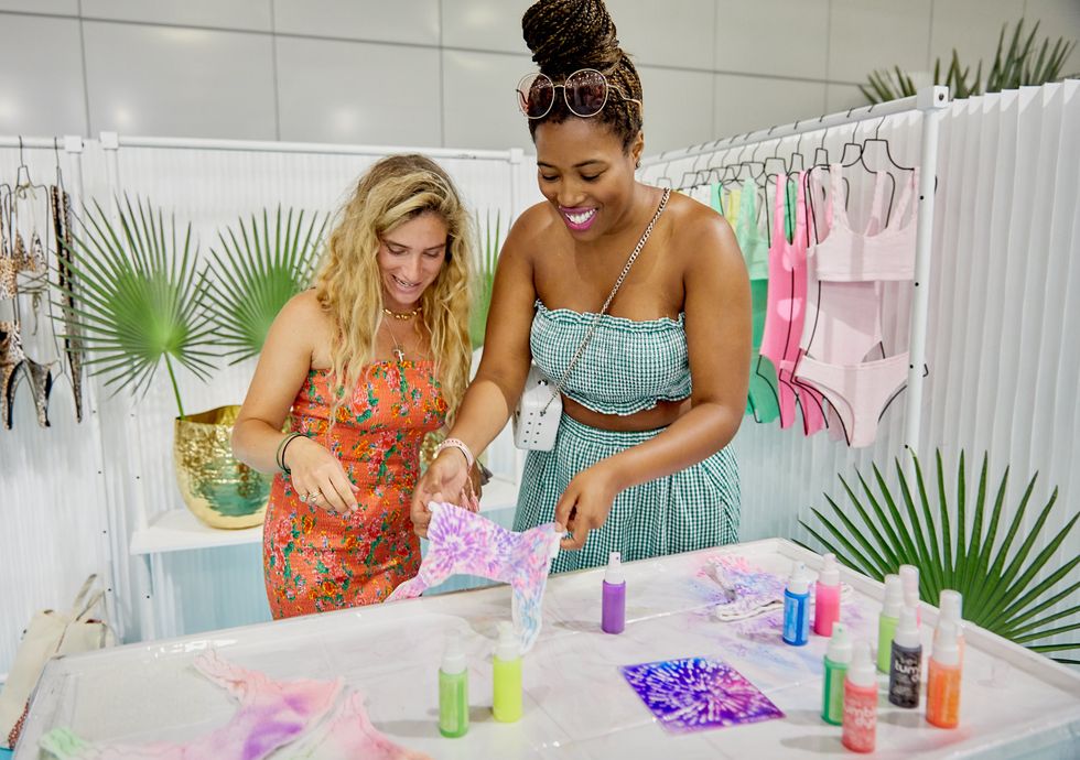 We spent two days wandering around this veritable fashion-and-lifestyle wonderland, which also housed a curated assortment of activations. Among them a Glamsquad braid bar (complete with Verandah scarves weaved into styles), an embroidery station courtesy of Artesano (we'll be cooling ourselves off with our new monogrammed fans all summer long), and a Reina Olga tie-dye bikini station, where we discovered an untapped talent for swimsuit design.