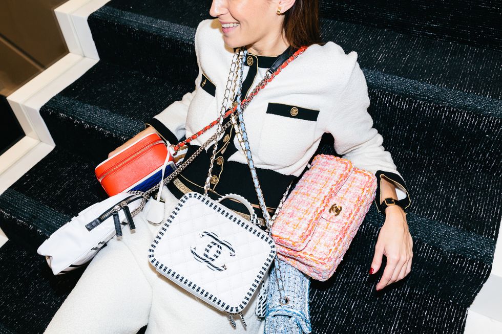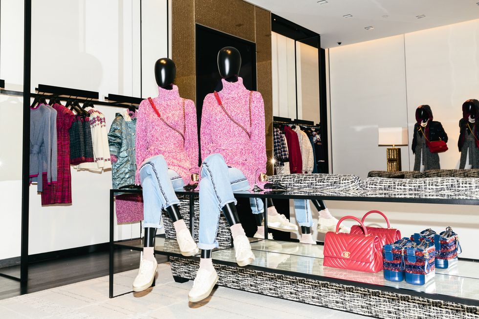 Allure abounds by way of a 60-foot pearl necklace sculpture, commissioned from the French artist Jean-Michel Othoniel and cascading down the four-story staircase, as well as tweed textiles throughout and a Maison d’art Goossens bronze-and-crystal chandelier. Lest we forget the fifth-floor private shopping salon—for when your haul of ready-to-wear, resort, shoes, and handbags requires more time and attention to sift through than your typical shopping trip.