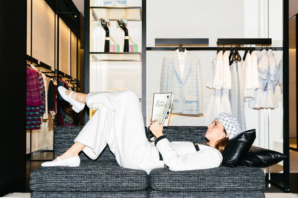 But before the masses descended on the space—eyes and hearts fixated on caviar quilted bags, tweed jackets, and ballerina flats—we spent an evening at the boutique with Gala Gonzalez. While the Spanish-born, UK-educated blogger, model, and DJ usually calls downtown Manhattan home, she made herself quite comfortable on all five of the flagship’s floors. (Yes, five.) We understand why.