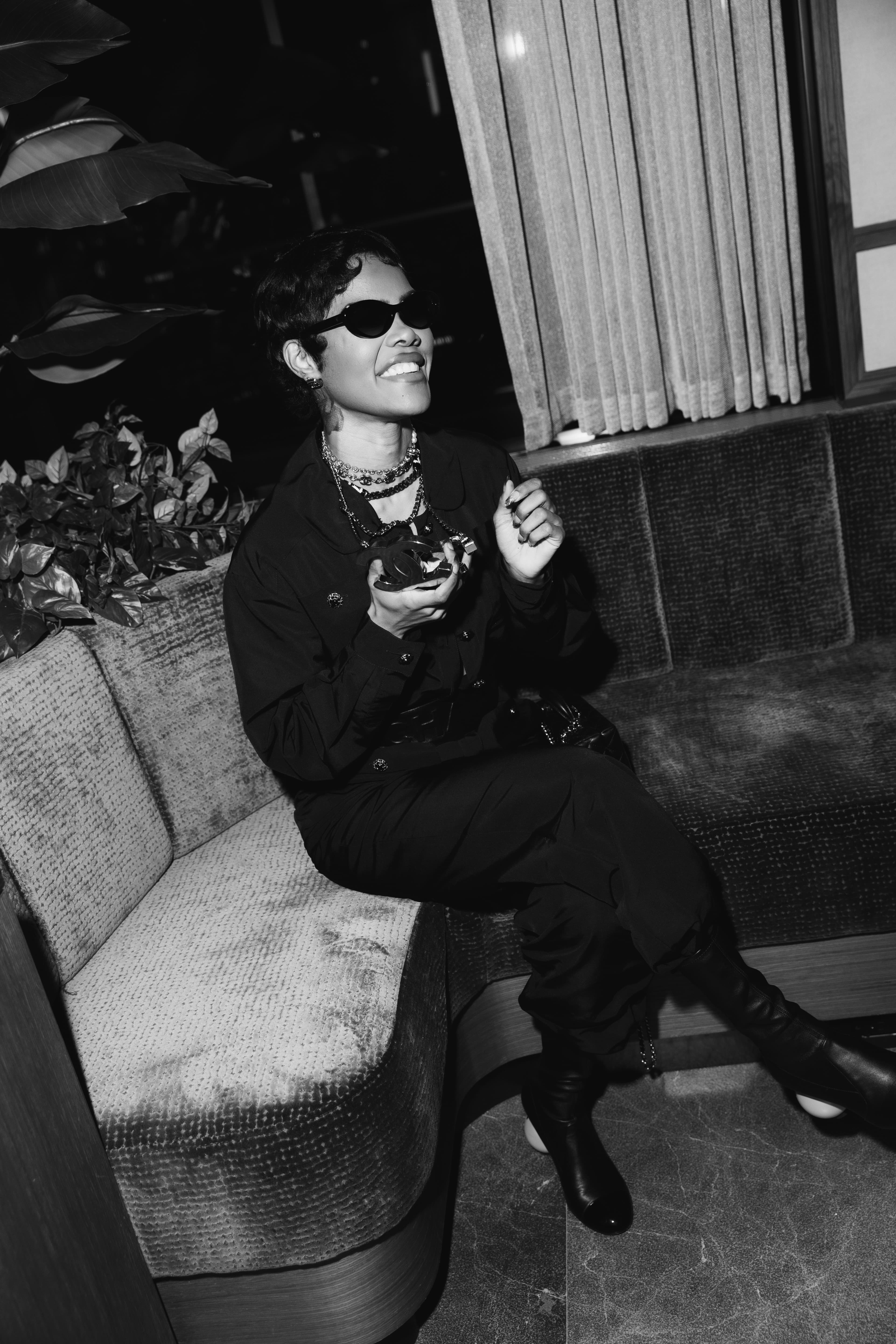 Last night, Chanel turned New York blue—literally. To celebrate the U.S. launch of Bleu de Chanel L'Exclusif, the French house took over the penthouse at 1 Madison with a guest list stacked with buzzy actors, musicians, and downtown It kids. I walked in and immediately spotted Evan Mock in front of the step and repeat, Christopher Briney, who arrived later and was immediately surrounded by flashing bulbs, and Teyana Taylor, who arrived in the pearl-heeled Chanel boots that are on everyone's wish list this season. Skinny fries and hamachi crudo were passed around on silver trays with Chanel napkins, and Daniel Caesar performed a surprise set around 9 p.m.