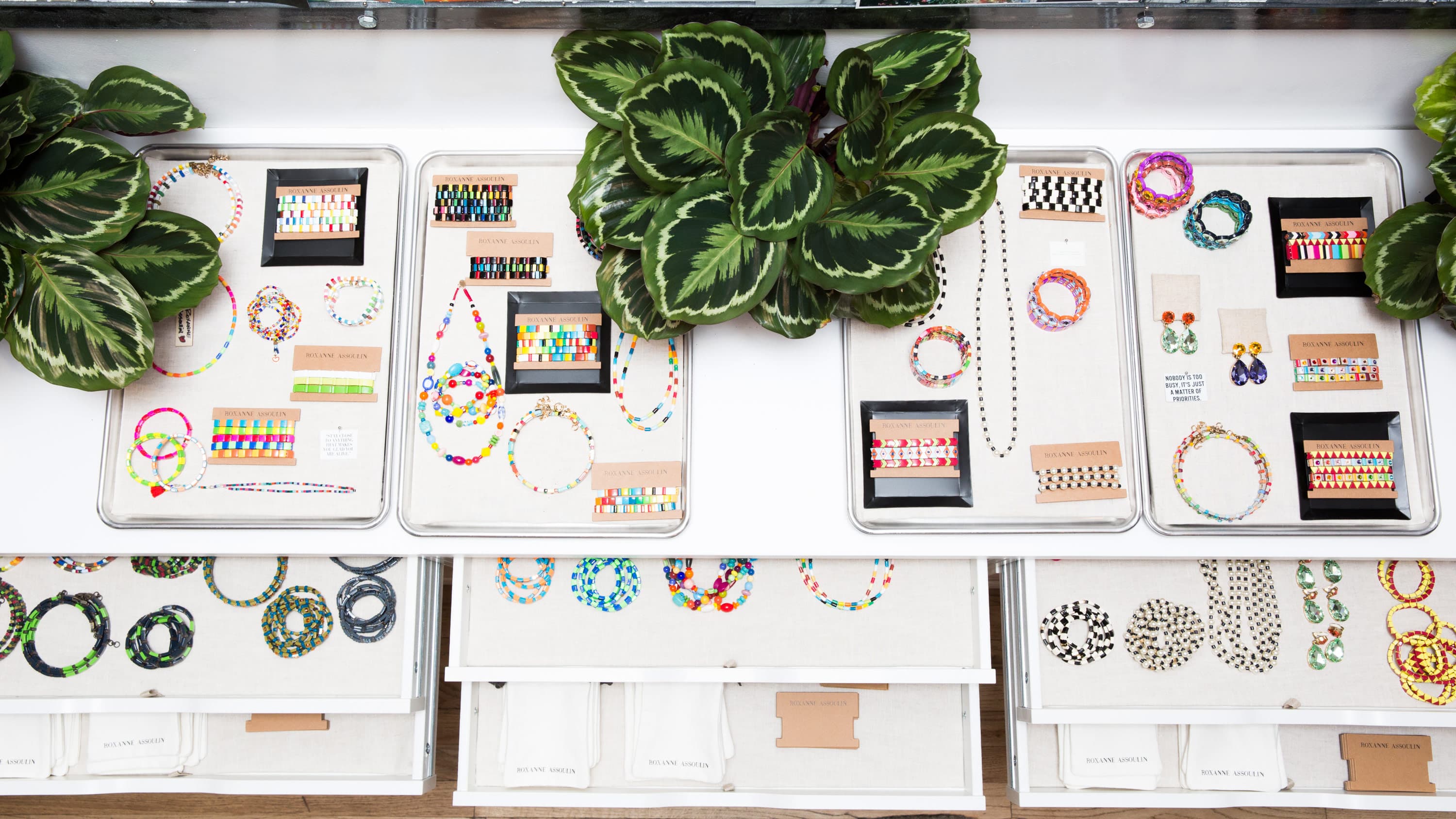 One would think that Roxanne Assoulin’s jewelry (you know the stuff; those Chiclet-like chokers and bracelets that first started popping up on people like Leandra Medine and Vogue editor Selby Drummond a year and a half ago) is the consummate millennial accessories brand. And in a sense it is. Those very same pieces, so easily stackable and mix-and-matchable, are Instagram gold, but where most young designers might think to make their products’ sheer sharable-ness a priority with anything they put out, for Assoulin, it was a pure and happy accident.