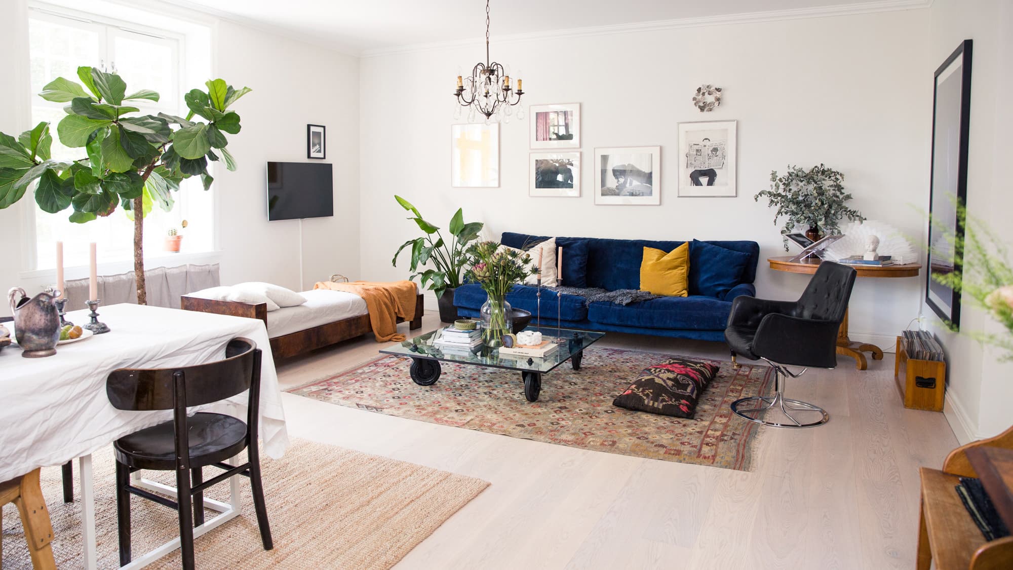 Conveniently, Wood (who worked for designer Filippa K for over a decade) also moonlights at a Scandinavian auction house, where she is able to snag the kind of incredible vintage pieces that had us swooning as soon as we walked through the door—think Turkish kilim rugs and elegant daybeds. After indulging in her homemade kanelbullar (a tastier cinnamon bun) for traditional Swedish fika—or afternoon coffee-and-pastry break—she shared the origin of her effortless eye for design, as well as her and her husband’s refreshing philosophy towards stylish childproofing.