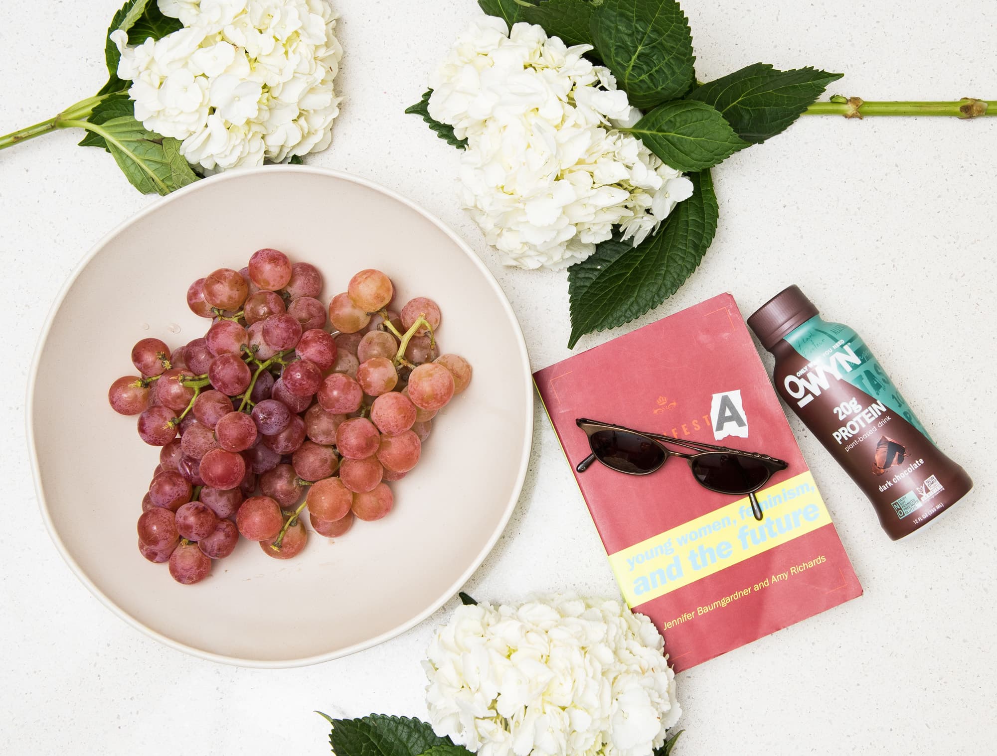 “I force myself to drink kombucha, and if I’m on the go, or after a workout, I love having the OWYN protein shakes. They’re already mixed, so I don’t have to go through the trouble of [making a shake]. There are so many different flavors that I can just grab one and go, and that really works for me when I am in a rush, which nine times out of 10, I am [