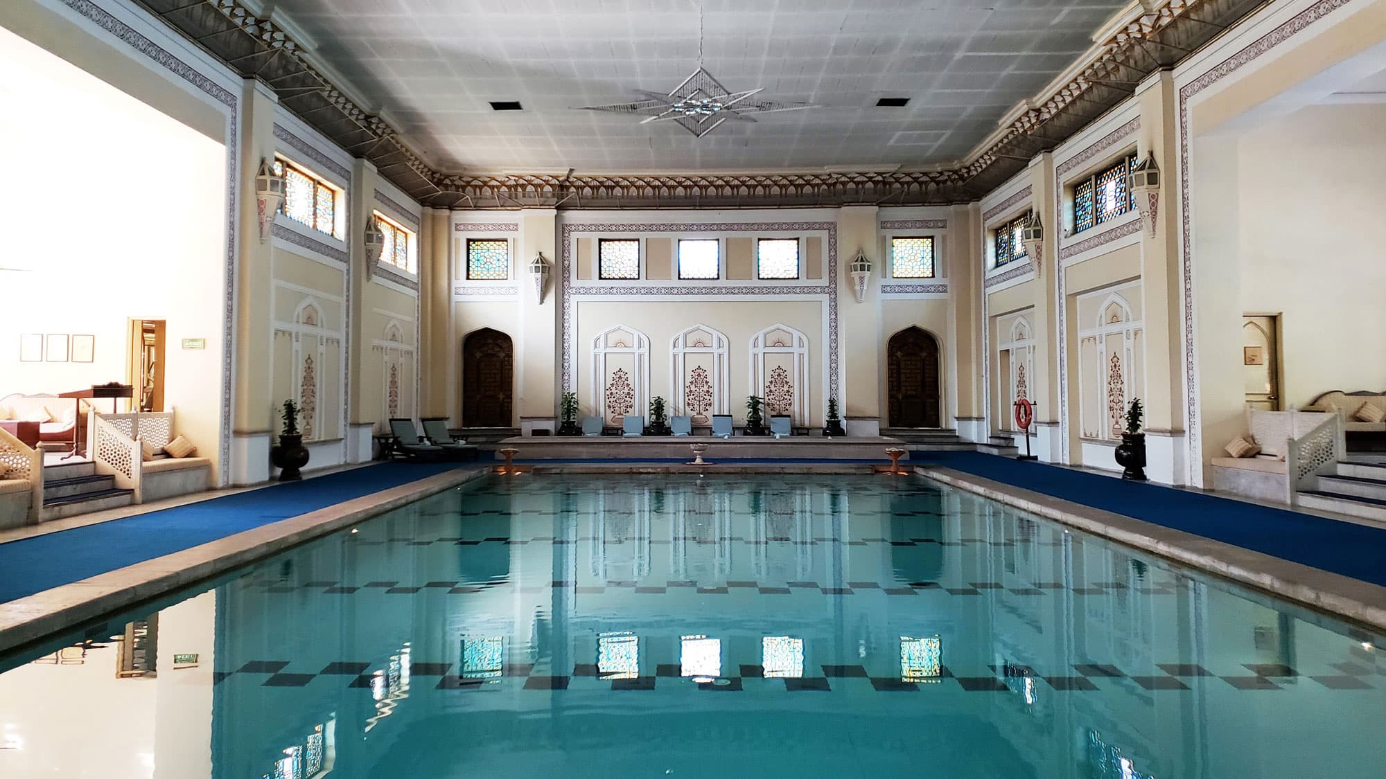 Built in 1835, the palace was the residence of the Maharaja of Jaipur and his royal family, until 1957 when it was converted and restored into the Taj Hotel Group’s 78-suite property. The grounds are impeccable with deep pink bougainvilleas and Mughal star-shaped shrubs, and birds literally dance through the air as you walk by. Inside, hand-carved marble latticework and ornate Rajasthani wallpaper lead you to the suites, each of which is infinitely different than the next. Mine featured a two-story all-white marble bathroom and a cozy alcove for morning tea.