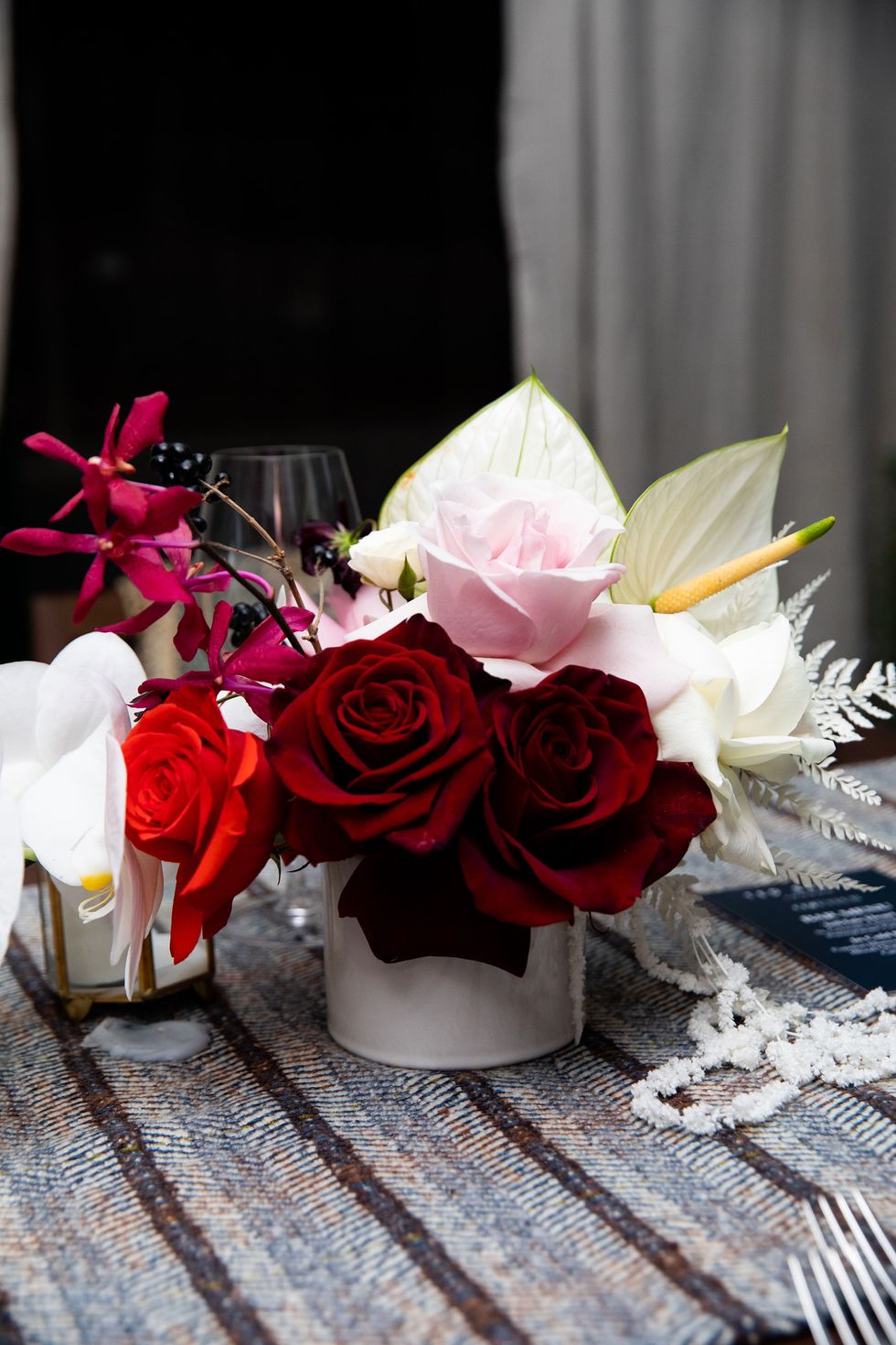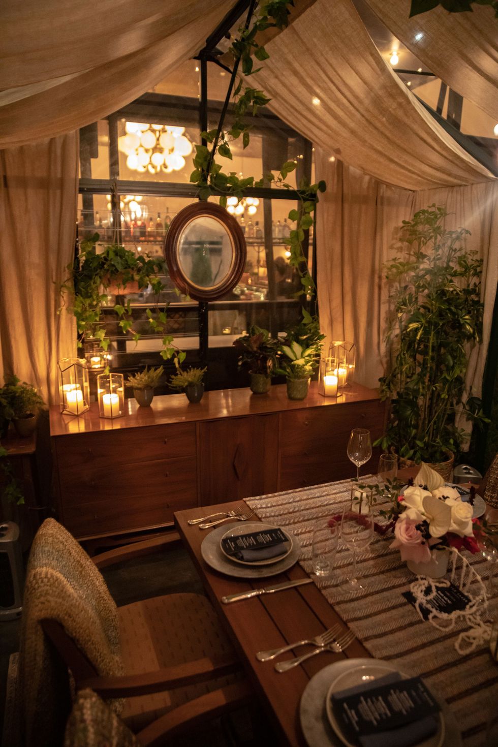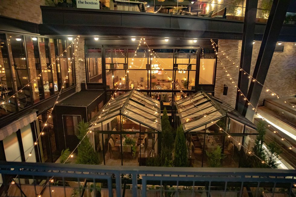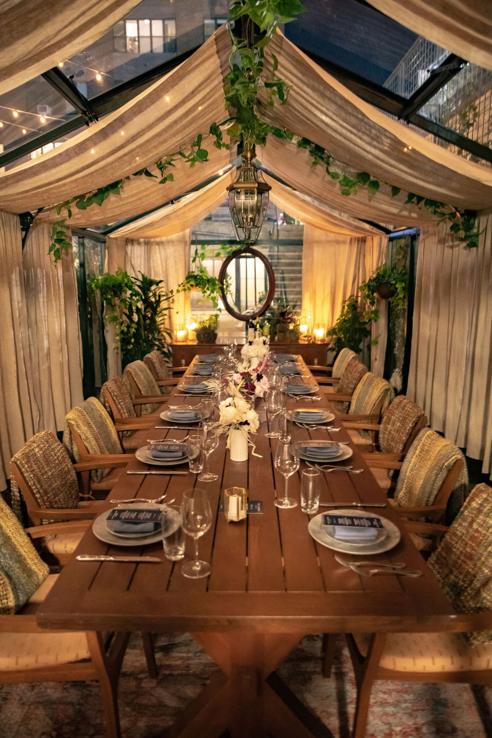 With the temps finally feeling… seasonal (as in, the office air conditioning is actually off), the timing of our night with our friends at Ted Baker couldn’t have been more pitch-perfect. Hosting an intimate dinner with the British brand at Williamsburg’s Hoxton Hotel (a favorite of ours), we invited a handful of old friends to cozy up in rooftop winter hideaways to officially kick things into holiday mode. The new glass structure on the rooftop was the most ideal place for our après-ski theme. Friendly reminder: This means that for the rest of the year, it’s officially *on* when it comes to parties, food and drinks, and most important...festive looks.