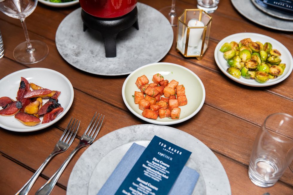 Over dinner, drinks, and a seriously showstopping dessert course (our Instagram stories and subsequent DMs were lit with inquiries), we took a peek at the brand’s upcoming holiday collection and got to planning ensembles in our head for the upcoming months. What better way to start than with dreamy ensembles from Ted Baker?!