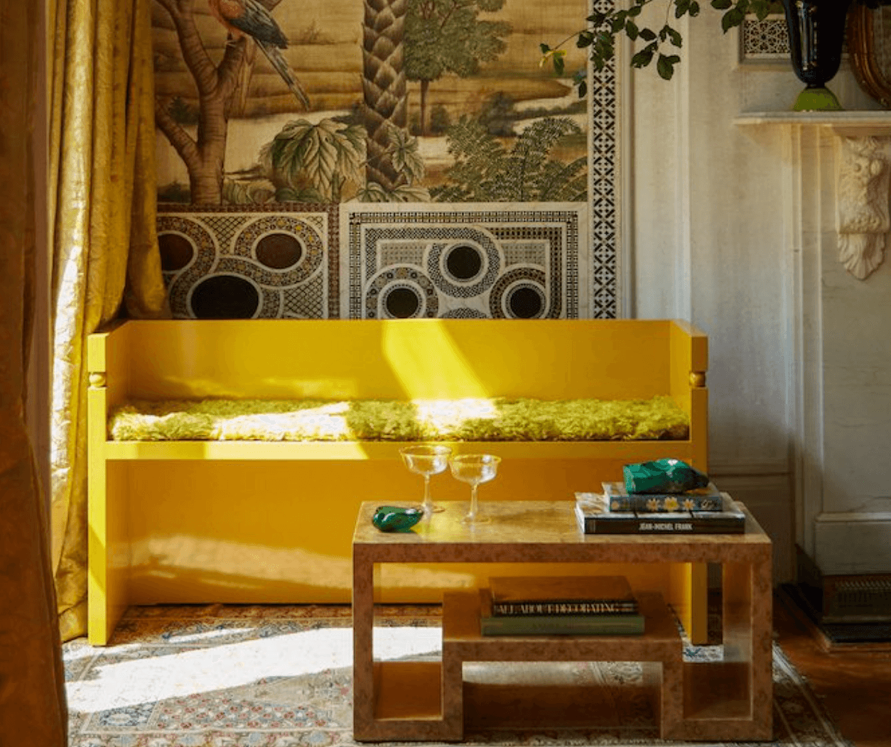 "Begin with your favorite piece—perhaps it's something you've inherited with nostalgic value, or something prominent in the room, like a sofa, and go from there. Don't stress about everything being too matchy-matchy; instead, think about whether items work together in a harmonious way. We often start with artwork or a special piece of furniture like our yolk-colored Josef bench for The Invisible Collection and build a color scheme from there." —Duncan Campbell