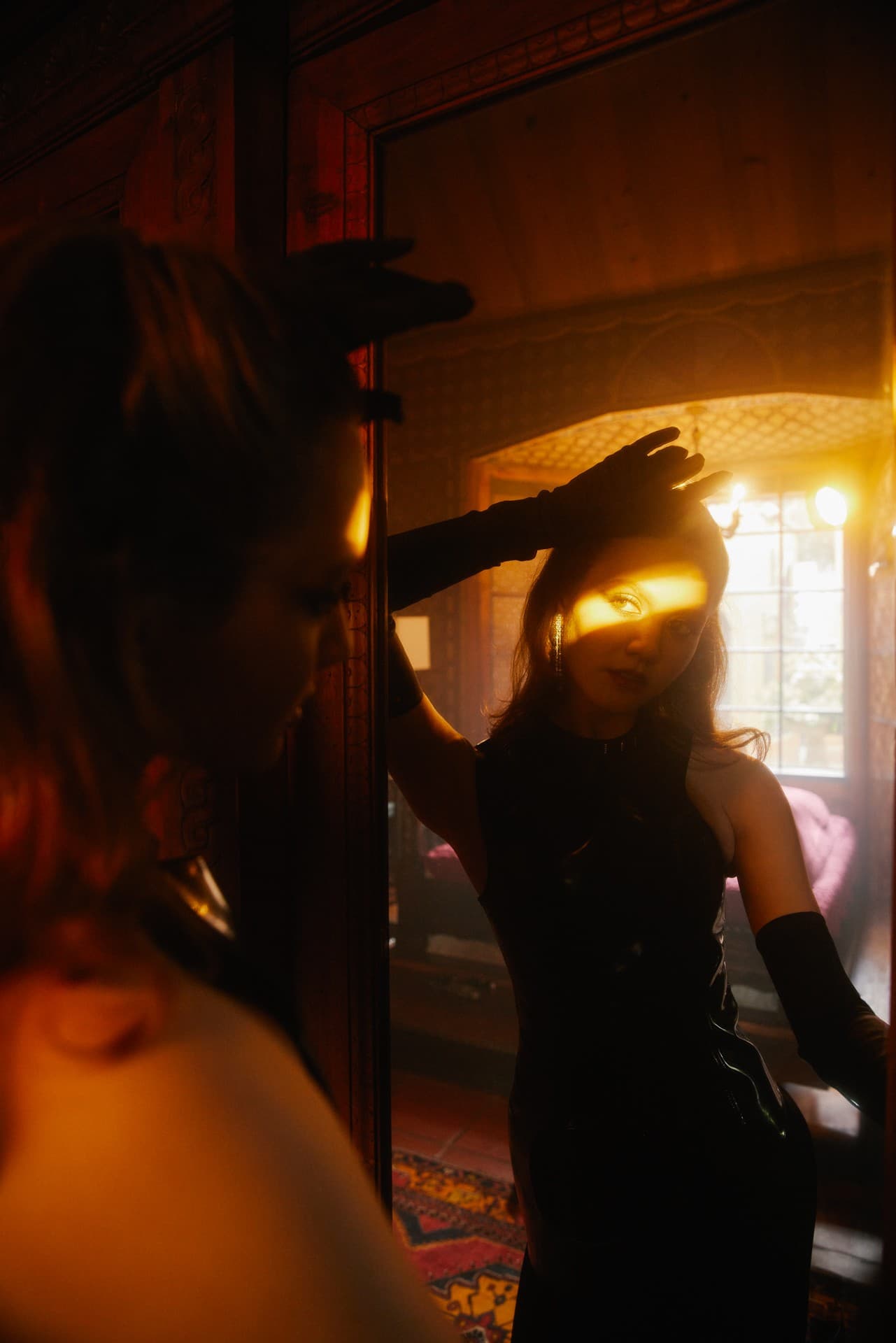 LC: “Well, when I saw the house, I was like, ‘Oh, it looks like an actual castle.’ And they have two chairs from an Italian castle in the house that are literally priceless. Also, I've been doing US-Chinese martial arts classes and learning how to use a sword. I even borrowed a sword from my Wushu teacher. In the end, we used the one that I rented from a prop house. But I think that was the starting point. I was also thinking about what kind of weapon Iris would use if she was a vigilante. Some of the classic superhero weapons feel a bit too violent. And I wasn't sure if that's what I wanted to glorify, but a sword feels reasonable. She could use it for cooking. Who knows?”