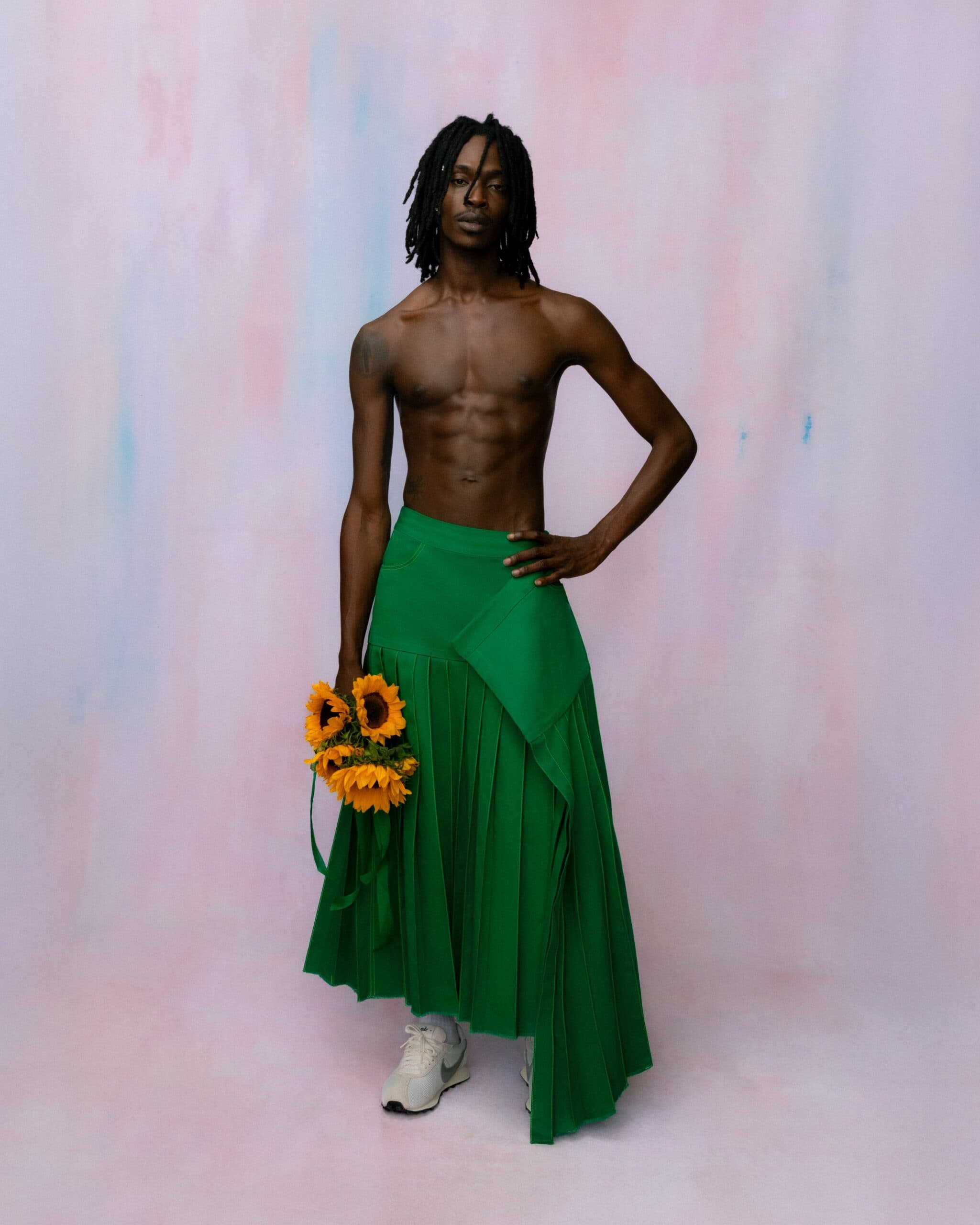 Agbobly moved to Chicago at the age of nine and into a housing community that was keen on championing his artistic pursuits and nurturing his creativity. An after school program within that community committed to helping children with their homework, but also made sure to expose them to all that the city had to offer. "It was like having a genie. I would literally be like, 'Hey, I want to try ballet,' and they would get me into a ballet class or I would be like, 'I want to try acting,' and they would get me into a play," he says. "That community was a lot of people that didn't have access to the arts or anything. A lot of kids who grew up in that space, they're Black and brown like me, and came from not so wealthy families. The odds were against us, but in that space, they made everything a possibility." Ultimately, that genie caught onto his love for fashion, 'Project Runway,' sketching, and Alexander McQueen—this resulted in them banding together and connecting him with a fellow Black queer designer in Chicago who helped him make his first dress.