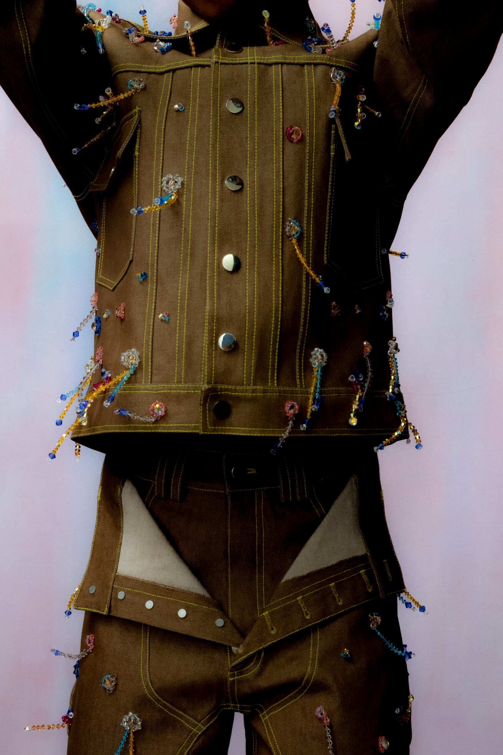 In Chicago, Agbobly felt solace in having a community of other Black kids to lean on and relate to. At Parsons, he shared classrooms with only one or two people that looked like him. But, graduating in the first pandemic class in 2020, the collective turmoil and uncertainty that we all felt, and sort of losing sight what he loved about fashion to begin with, it was Parsonss knitting professor Annie Larson who steered him back in the right direction. "I always admired her work after graduating and wanted to reconnect with her," he says. "She invited me over to her studio space, and while we were there, she was like, 'Do you actually want a space here?' She has a large following on Instagram. So we did a GoFundMe and I raised, I think $12,000 for me to be able to get a studio space and pay for it for a year and also launch my collection."