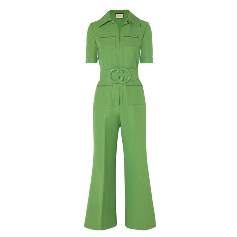 The jumpsuit has definitely evolved from your standard denim dungaree. It’s the perfect piece to throw on when you’re running late on a Monday morning and will still make you look like a million bucks. Feel free to play with tons of styles, from silk-satin to a more tailored fit for a chic look every day of the week—it’s that easy, especially paired with some bejeweled Gucci loafers.