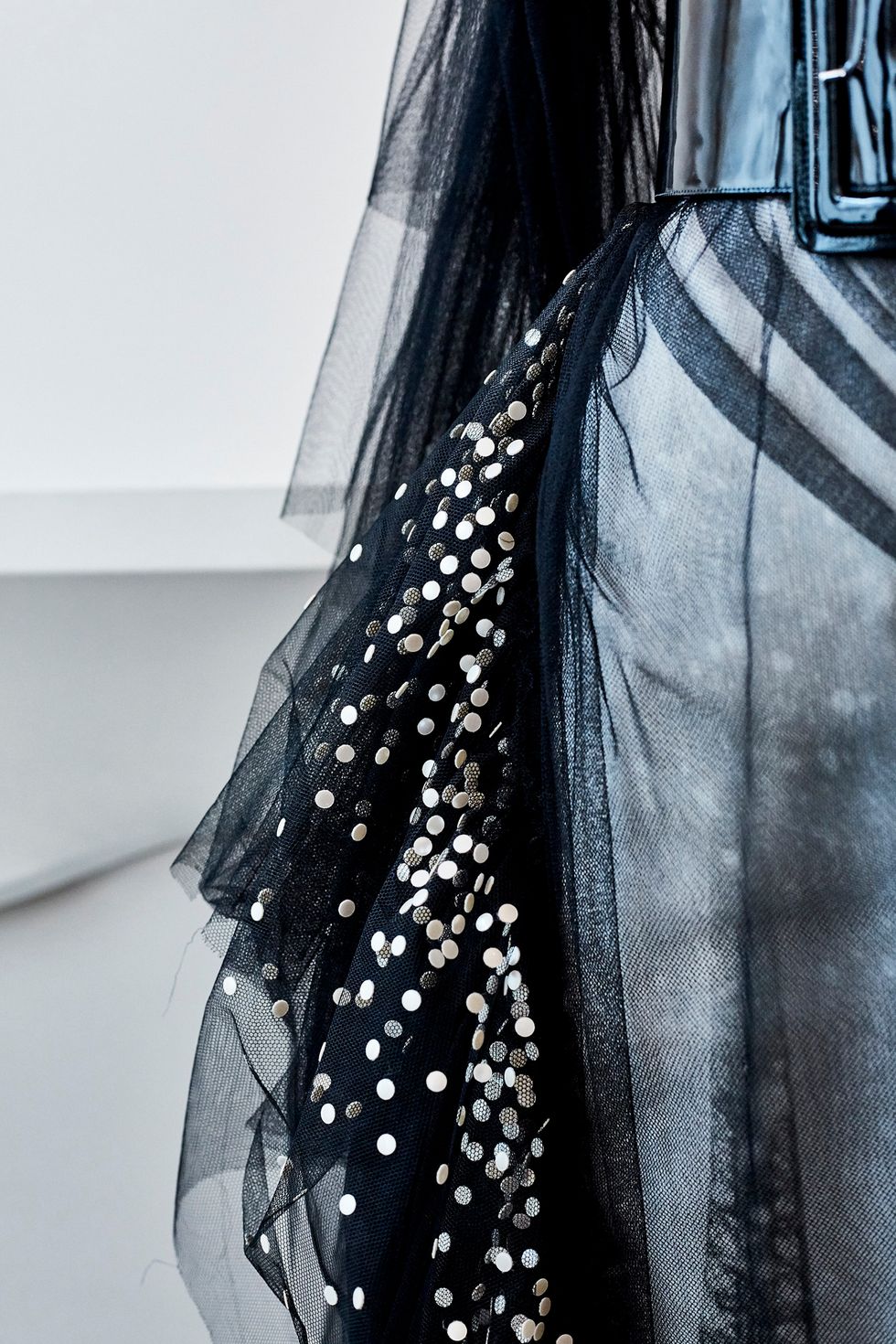 We were invited up to Mr. Gaultier’s beautiful atelier, a stunning 19th-century building in the 3rd arrondissement on the right bank, to take a closer look at the ornate detailing and craftsmanship that went into two looks from the couture show. This is the brand’s all-encompassing HQ. It is also where the French designer stages his shows and receives his couture clients and conducts fittings. Fanny Thinselin, vice head of the atelier, walked us through the complex detailing and construction of the two looks from the collection.