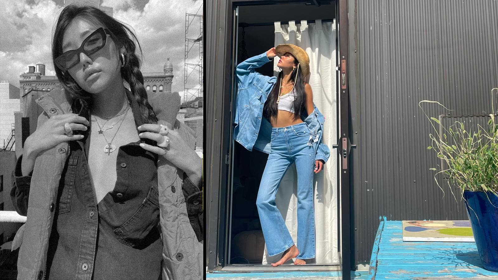 "The Levi's 70s High jeans are arguably seasonless, and that's what makes them the perfect pair of fall jeans. Fall feels like that stuck, in-between place we've all been in. Moving from summer to fall, the weather varies so drastically throughout the day here in NYC, so I always love to layer and mix it up, such as with the white cropped top and denim oversized shirt. That's my quintessential casual fall fit. And I always like to add a flare of personal touch, whether it's some loud jewelry, a statement belt, or a cowboy hat.