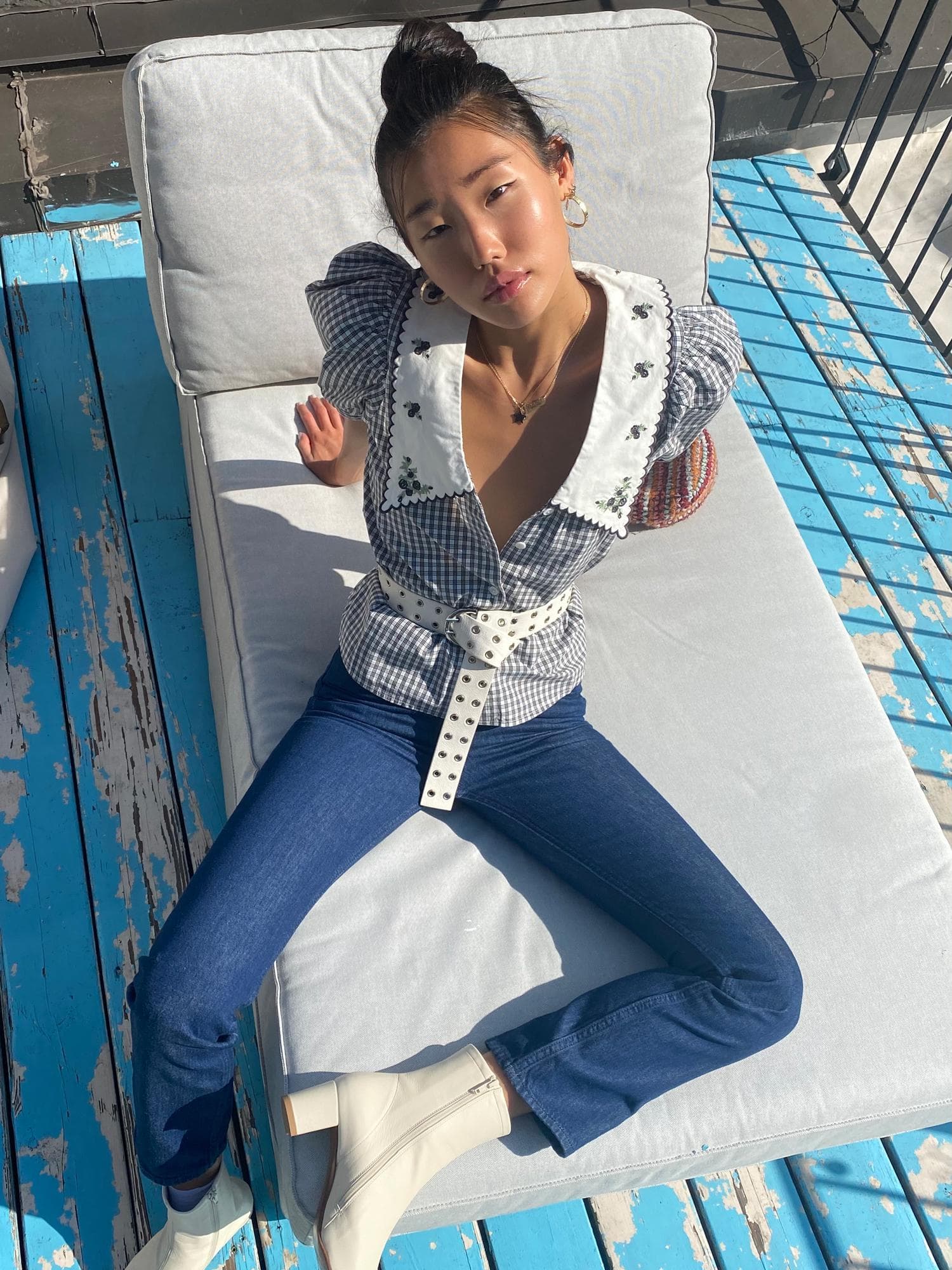 "Above all, the comfort and practical nature of a pair beat all. The way they make me feel. The elusively empowering feeling of being able to 'wear the pants' as women in a man's world. As an Asian woman, experimenting with jeans has been an integral part in deconstructing social gender norms and pressures displaced onto me, specifically with the rise of oversized silhouettes which give me the physical freedom to rebel from feminine standards built off the male gaze, deliberately rejecting the artificial female body."