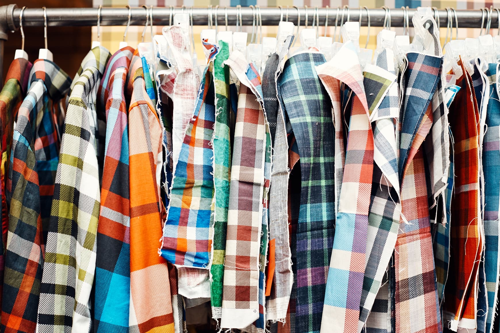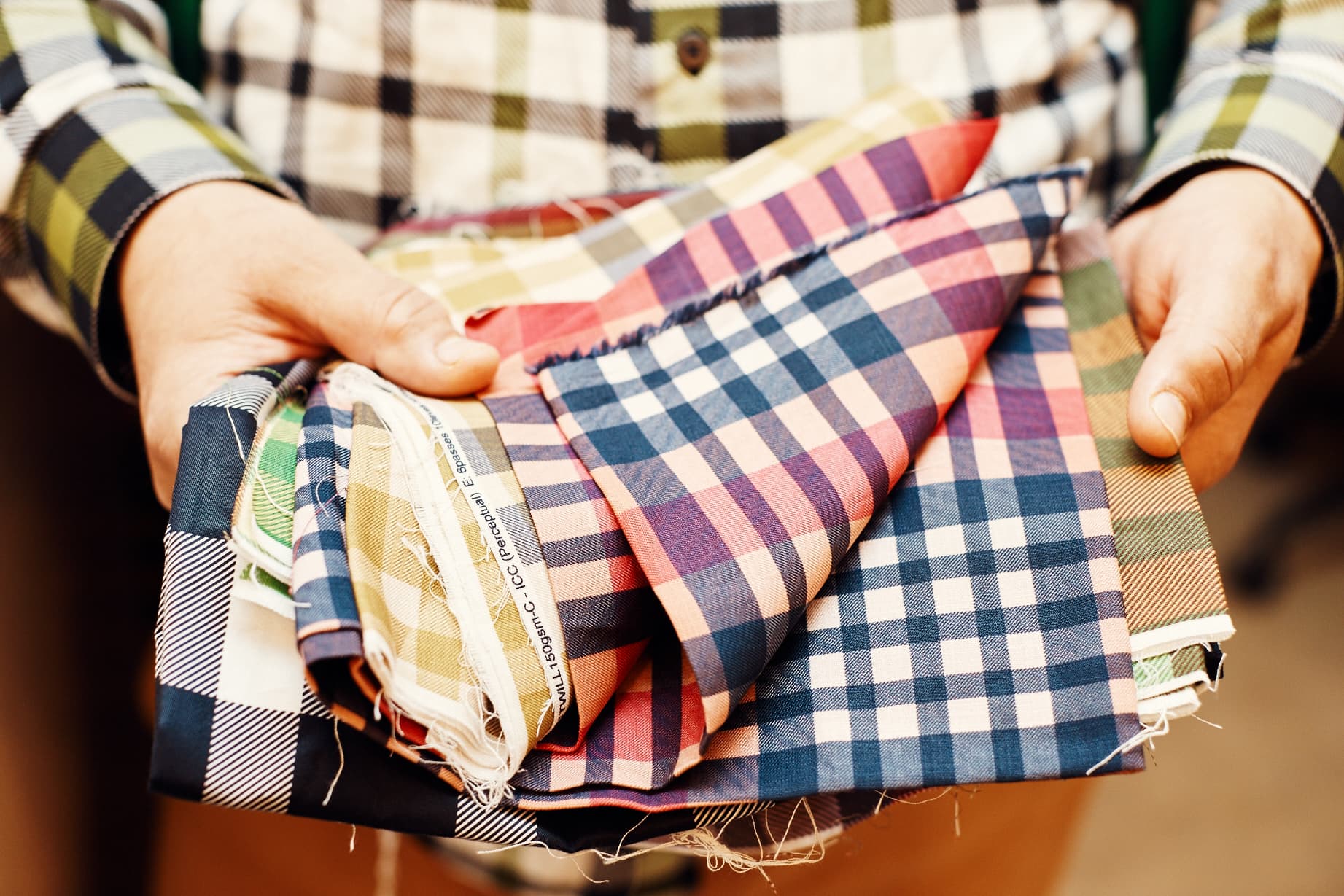 After 11 years as a ready-to-wear brand, Jeffrey and Robert closed Costello Tagliapietra and are now capitalizing on their deep love of plaid with the new JCRT line, keeping it both accessible and timeless. Their shirts are priced at $125 and range from size small to 4XL to accommodate a variety of body types. Says Robert, “When we first started, we were looking at these mills and pulling from the same fabrics [as] everyone from J. Crew to Tom Ford.” They both wanted a more varied selection of material, and have now designed their own software to print hundreds of new pattern and color combinations. “[The software] was fulfilling a need. I wanted a bright pink plaid. I wanted a fluorescent, weird plaid. It’s been a fun game.” To ensure that every pattern lines up perfectly no matter the size, each garment is hand-cut individually and then sewn. “We wanted it to feel like a beautiful custom shirt.”