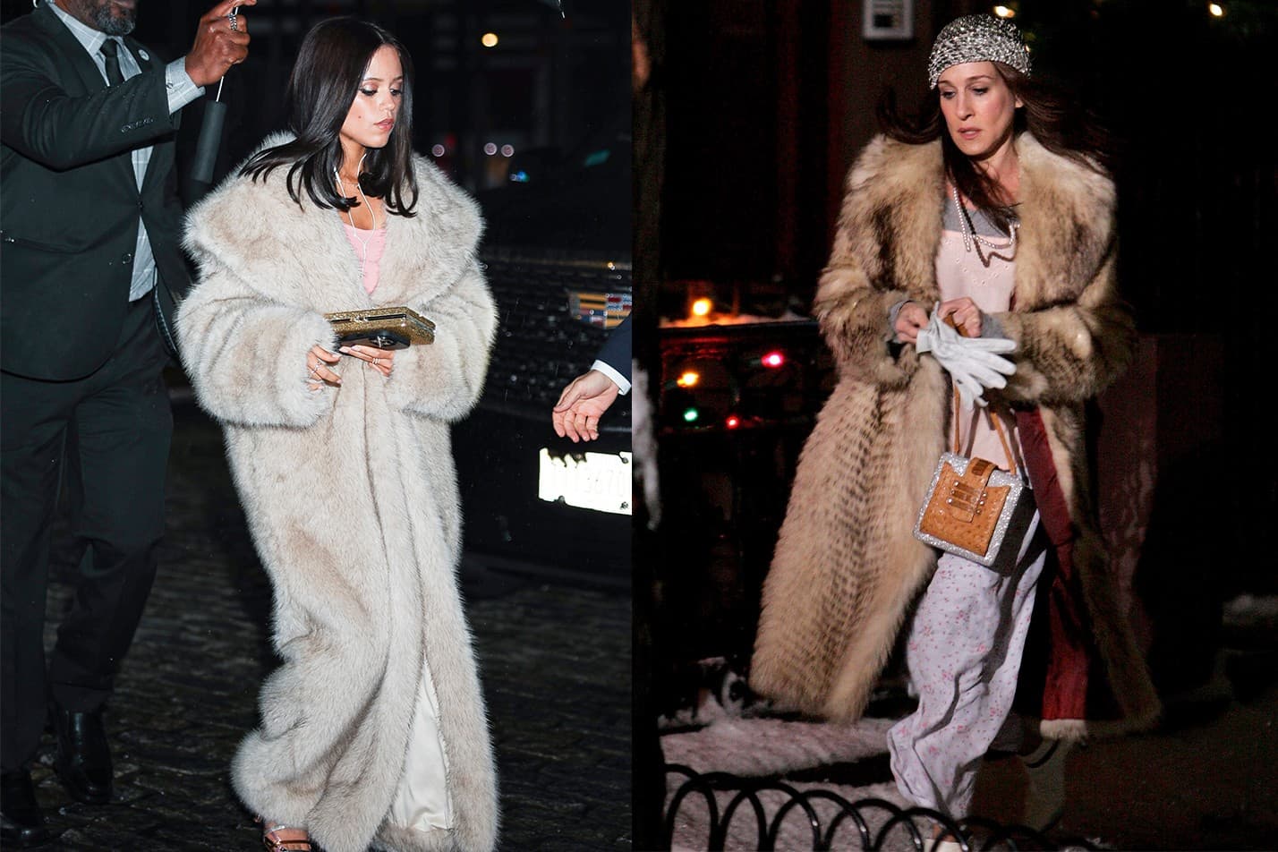 Aeon/Getty Images; James Devaney/Getty ImagesAdding another layer to night’s references, Ortega and Melendez amplified the Sex and the City connection with a plush, full-length fur coat for the festivities afterwards. The piece echoed the iconic outerwear Bradshaw famously layered over her pajamas for a New Year's Eve visit to Miranda, further solidifying Ortega's red-carpet moment as a tribute we’ll never forget.