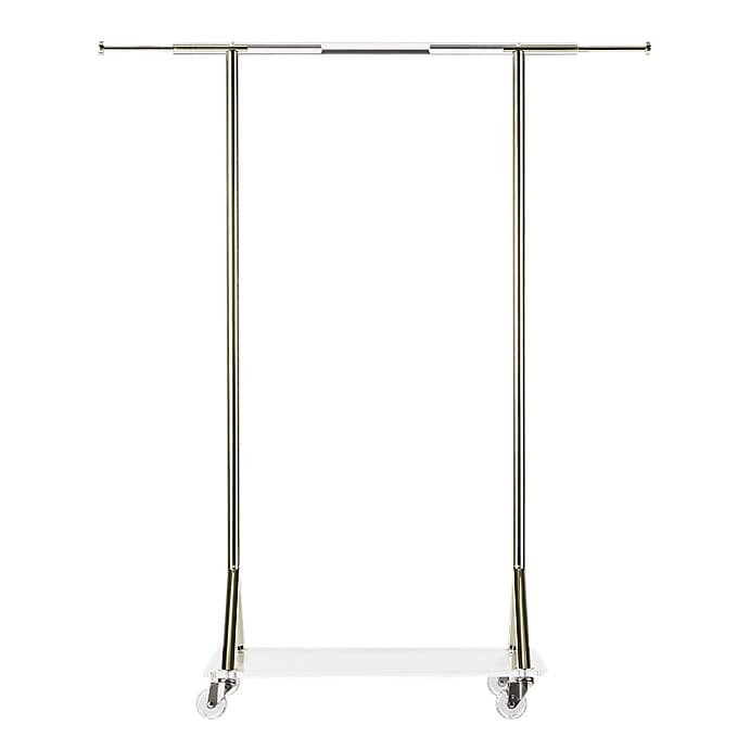 that you can keep out.” Not only that, it rolls, “so you can put it in your living room if you have a dinner party” and hang coats on it, she adds. Problem solved.