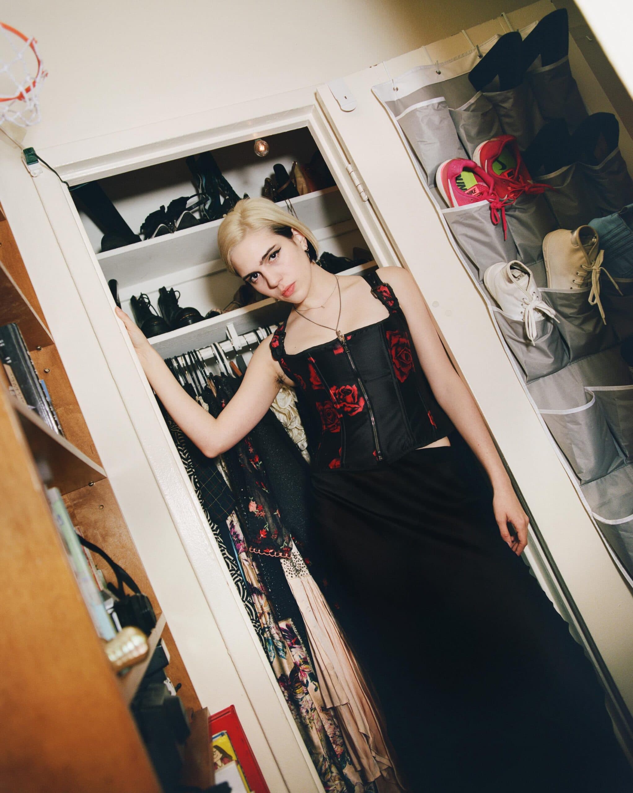 Before Sunflower Bean embarked on their latest tour, Coveteur photographed Cumming in her home base: the very same East Village apartment she grew up in. Against the backdrop of the neighborhood where she first formed her artistic identity, she showed us the garments that mark its progression—from her lucky, one-of-a-kind Saint Laurent jacket to vintage items personally gifted by Courtney Love.